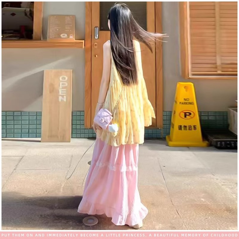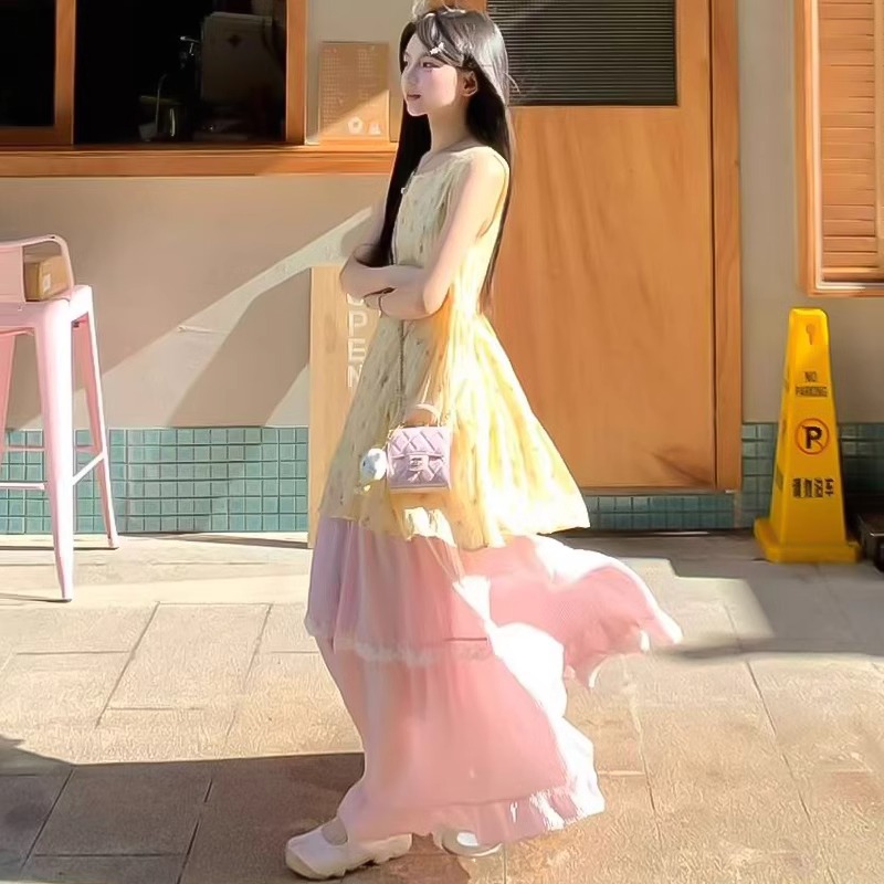 粉色蕾丝半身裙女夏季2025新款高腰显瘦a字裙肌理感甜美蛋糕长裙