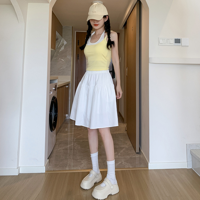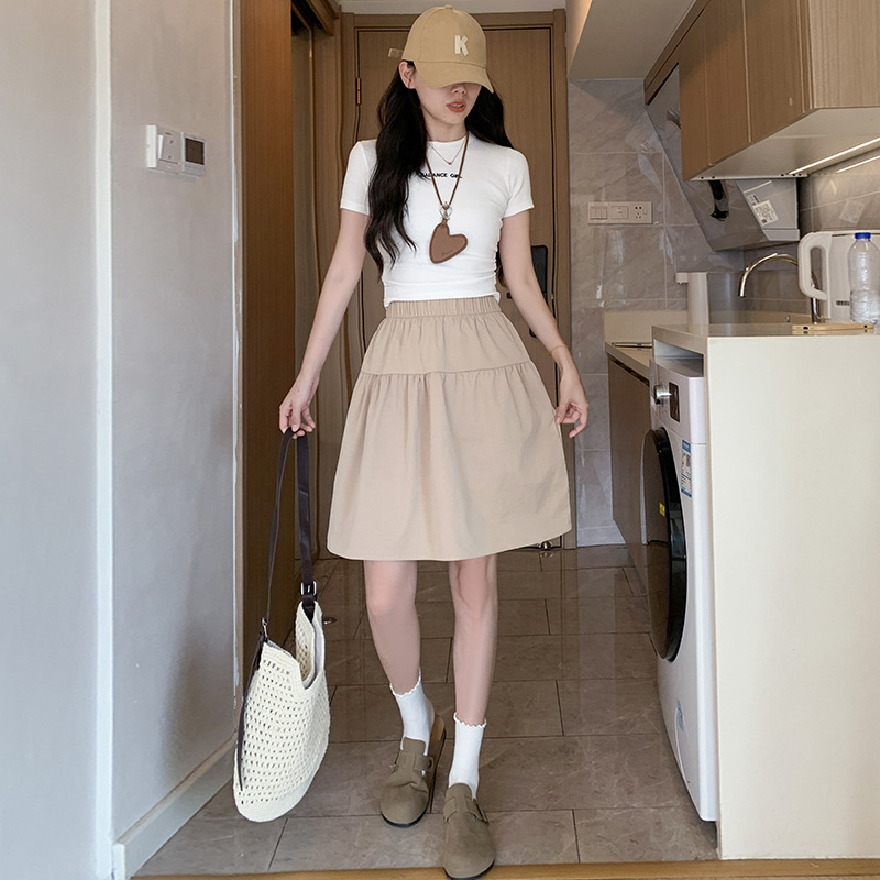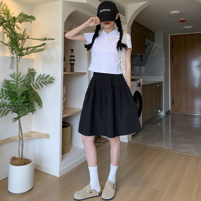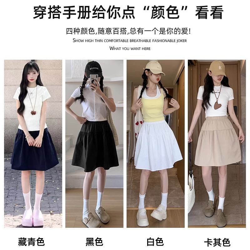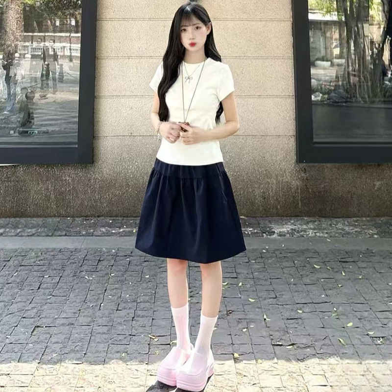 藏青色日系短裙女夏2025新款高腰显瘦a字休闲小个子学院风半身裙