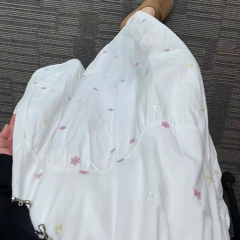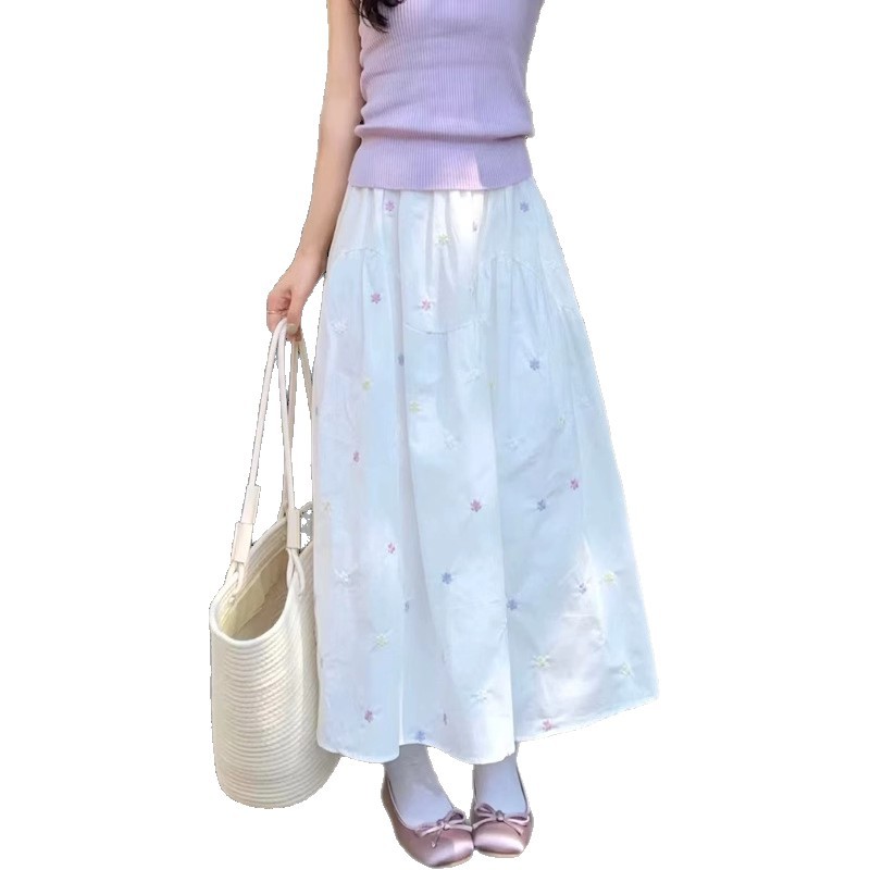 白色碎花半身裙女夏季新款高腰显瘦a字裙小众刺绣设计压褶中长裙