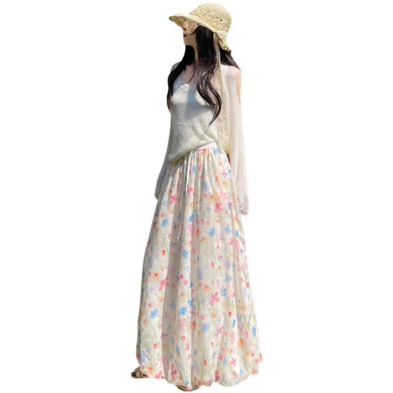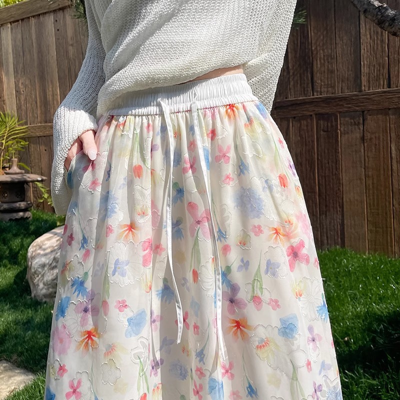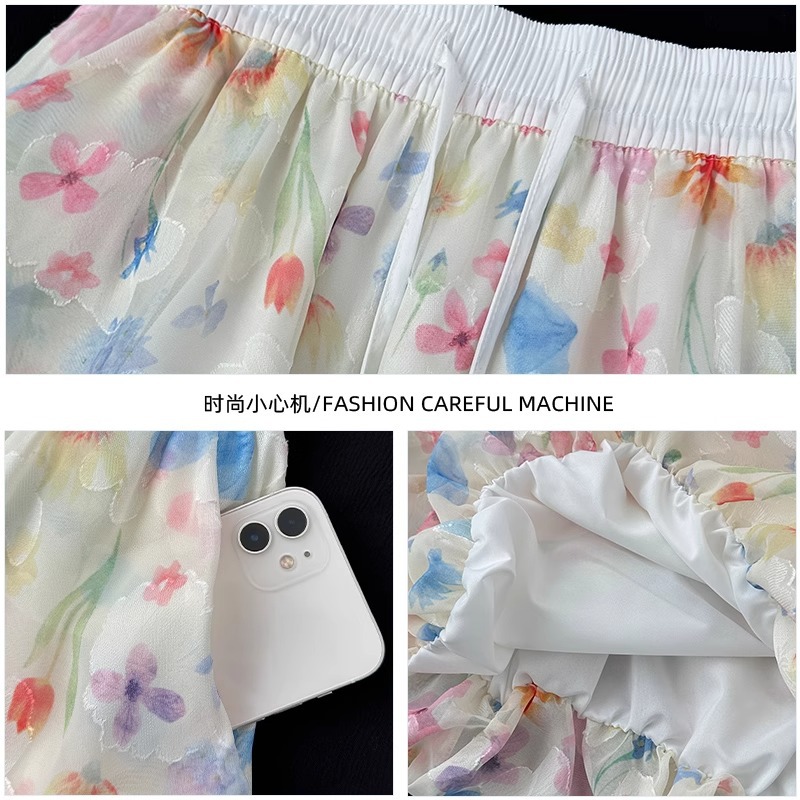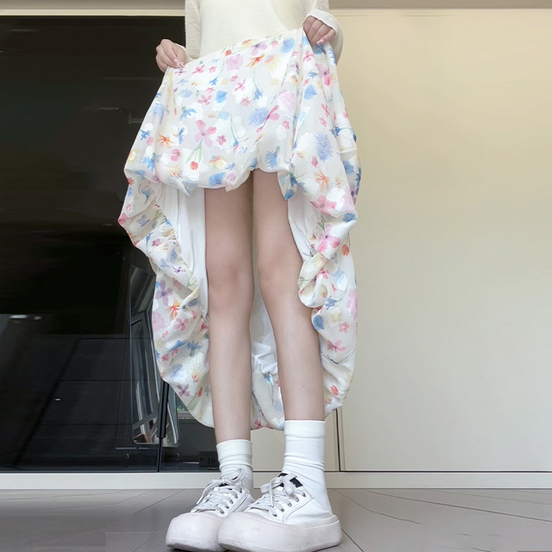 彩色花苞半身裙女夏季薄款2025新款设计感韩系复古碎花冰丝灯笼裙