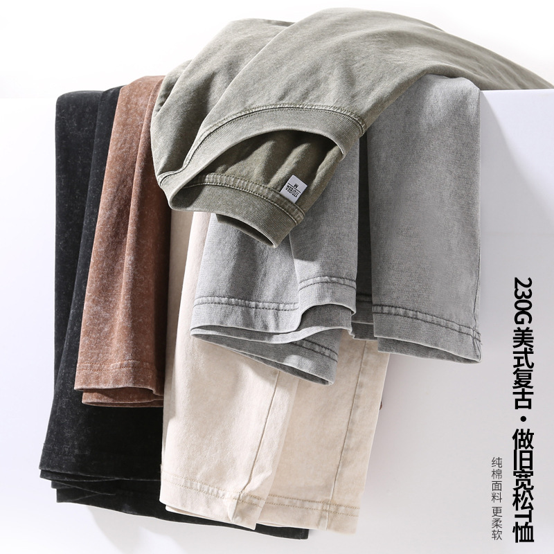 柄润服饰丨230男装春季复古做旧工艺高街水洗宽松潮牌蜡染t恤跨境