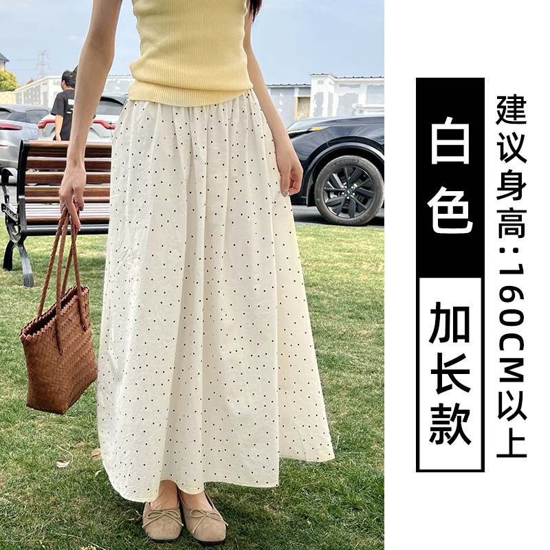 白色波点半身裙女夏季新款高腰显瘦a字伞裙小个子气质休闲百褶裙