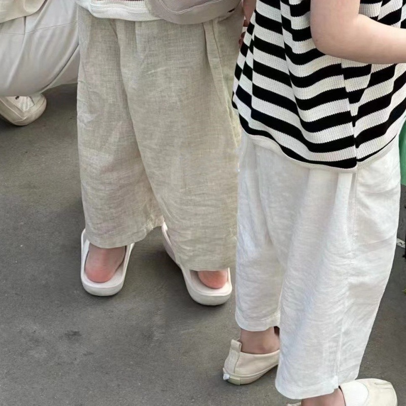 夏季女童休闲裤宝宝洋气儿童个性潮韩版棉麻九分纯色时髦阔腿裤