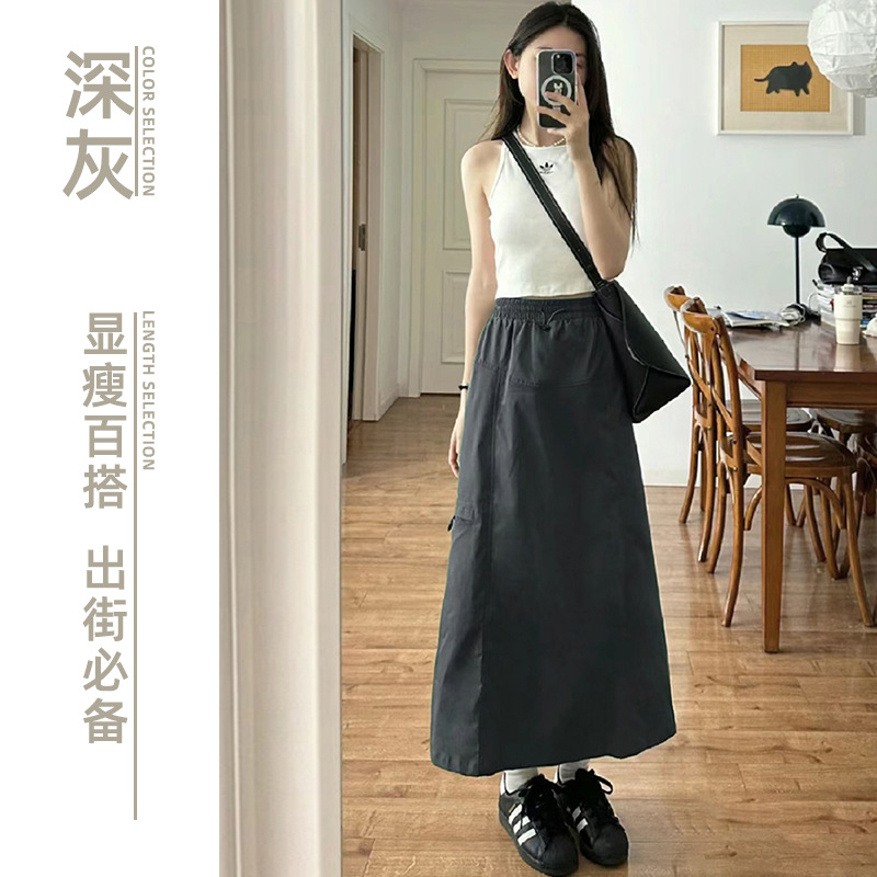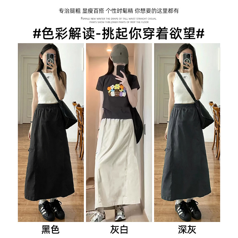 白色工装半身裙女夏季新款小个子高腰显瘦松弛感美式速干开叉半裙