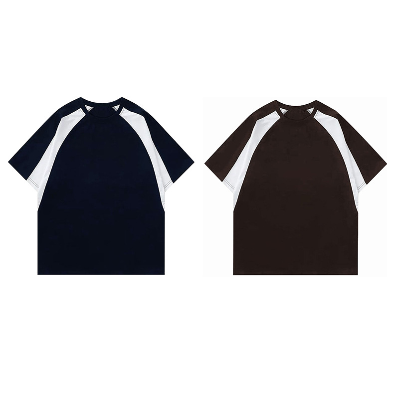 A43#(21支超爽棉220克索罗娜螺纹)纯棉插肩撞色光版短袖T恤跨境