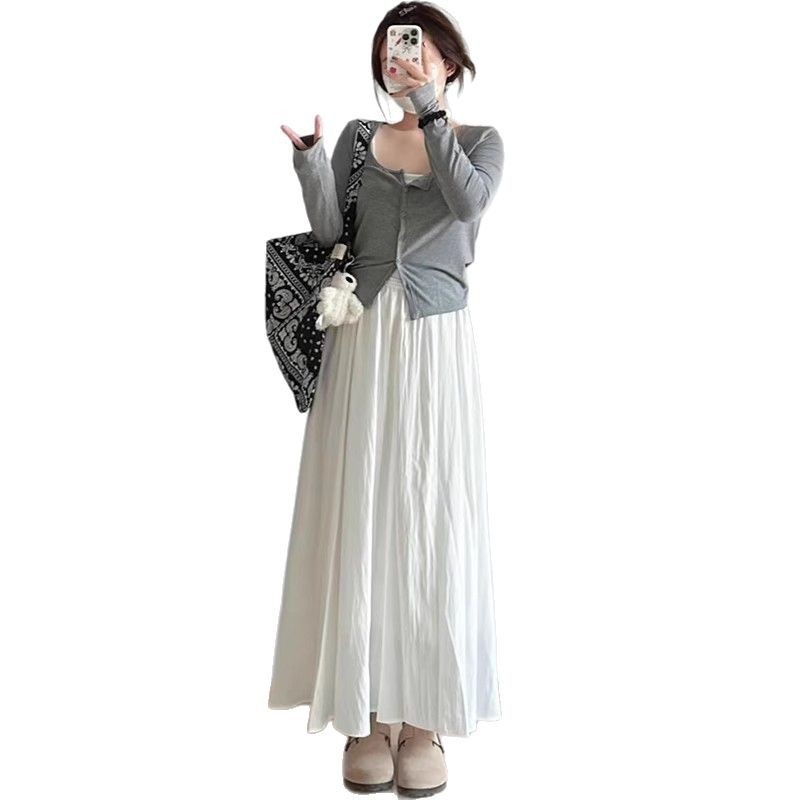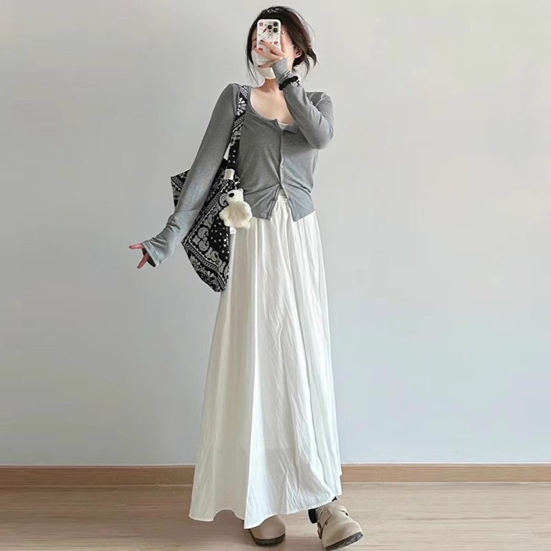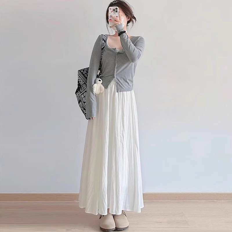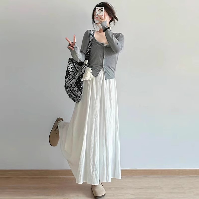 白色半身裙女春夏2025新款高腰显瘦裙芭蕾风中长款蓬蓬百褶裙子
