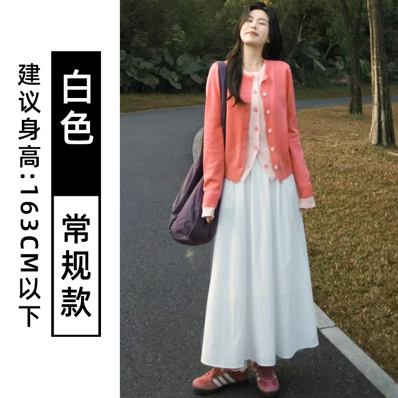 白色半身裙女夏季2025新款小个子a字伞裙气质韩版高腰显瘦百褶裙