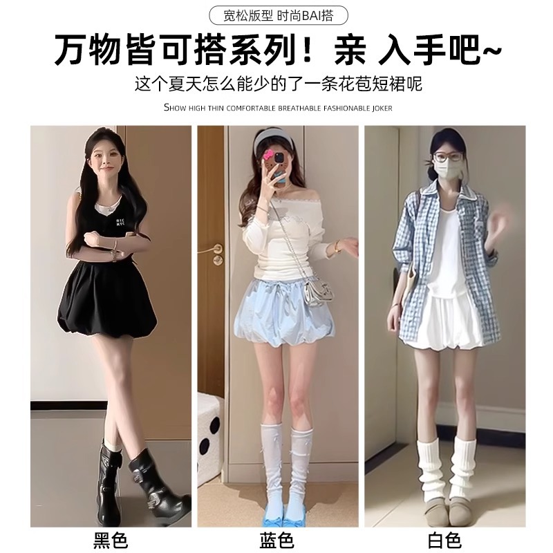 黑色蓬蓬花苞短裙女夏季新款高腰显瘦a字裙日系学院风蛋糕半身裙