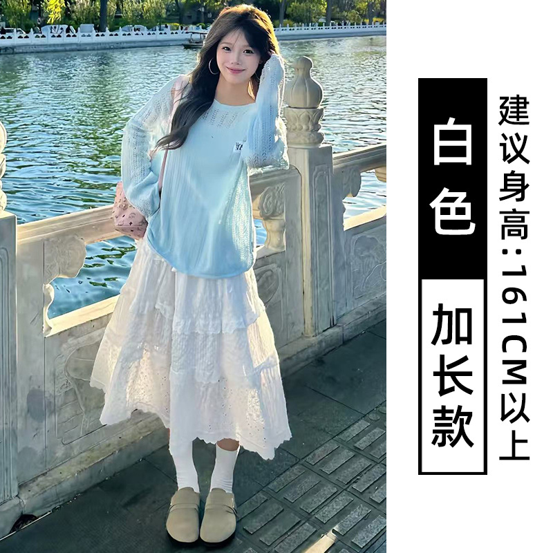 白色蕾丝花边半身裙女2025夏季新款法式芭蕾风蓬蓬裙高腰a字长裙