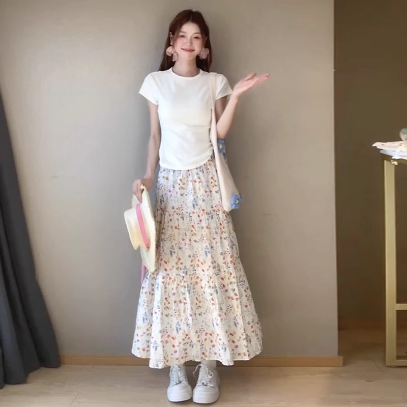 碎花半身裙女夏季新款小清新高腰显瘦a字裙法式设计感小众蛋糕裙