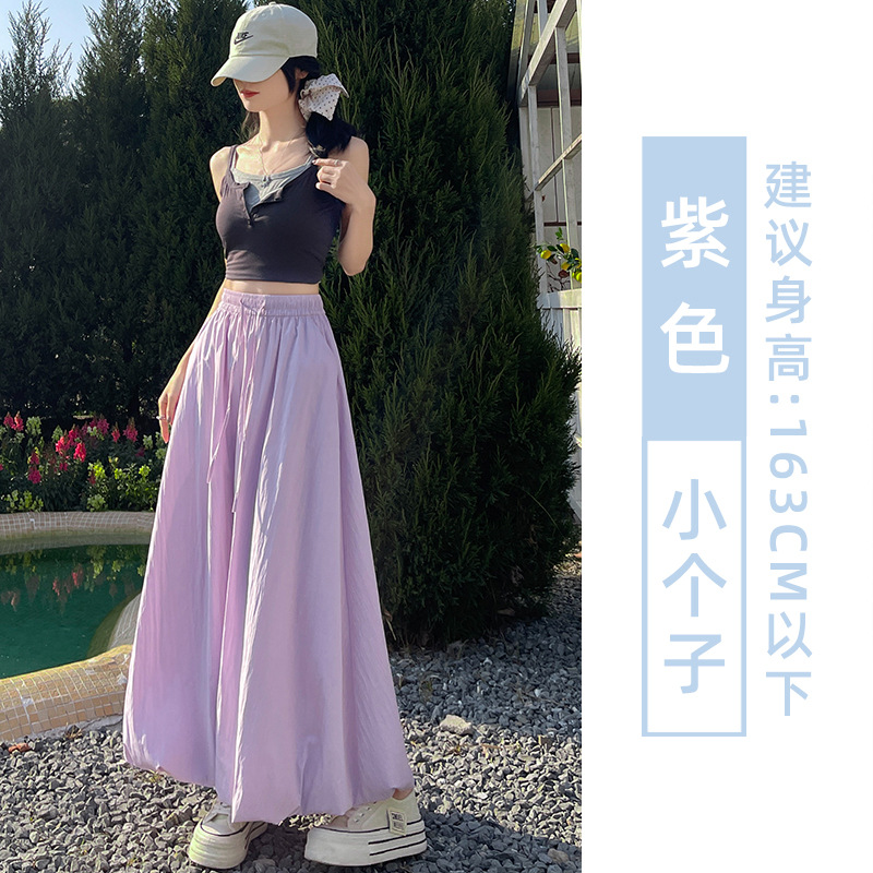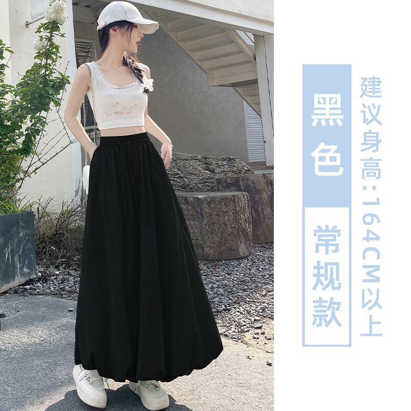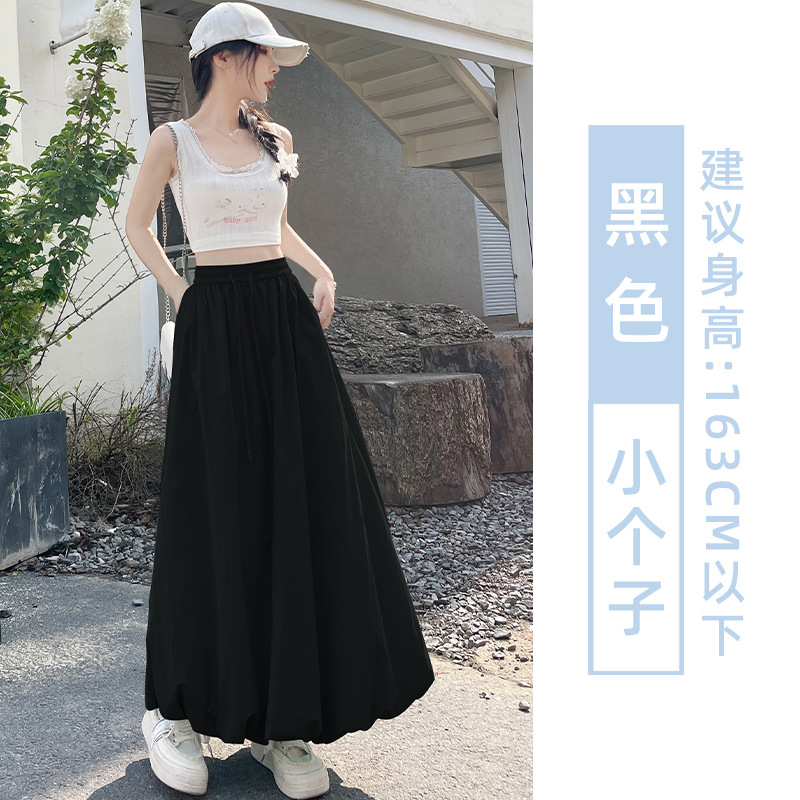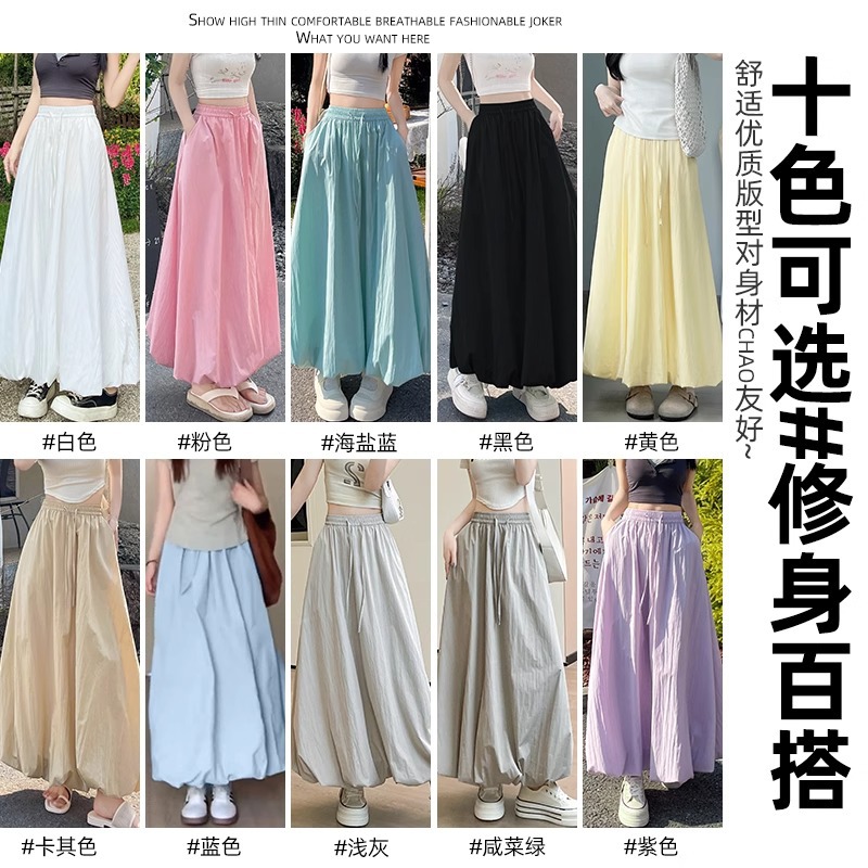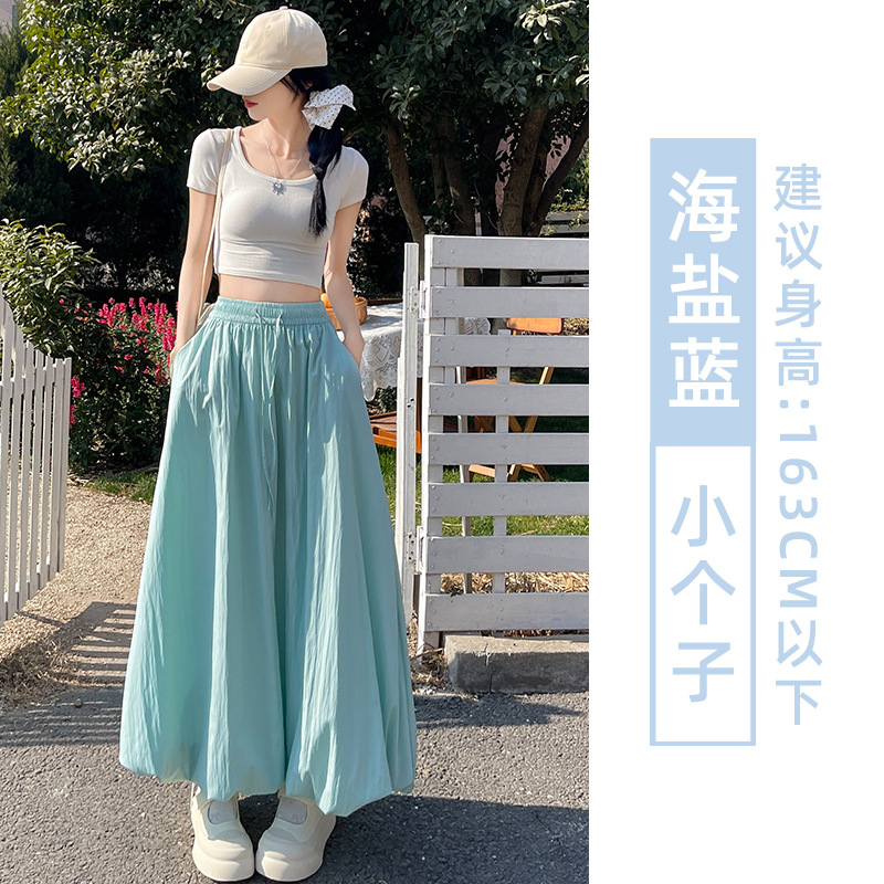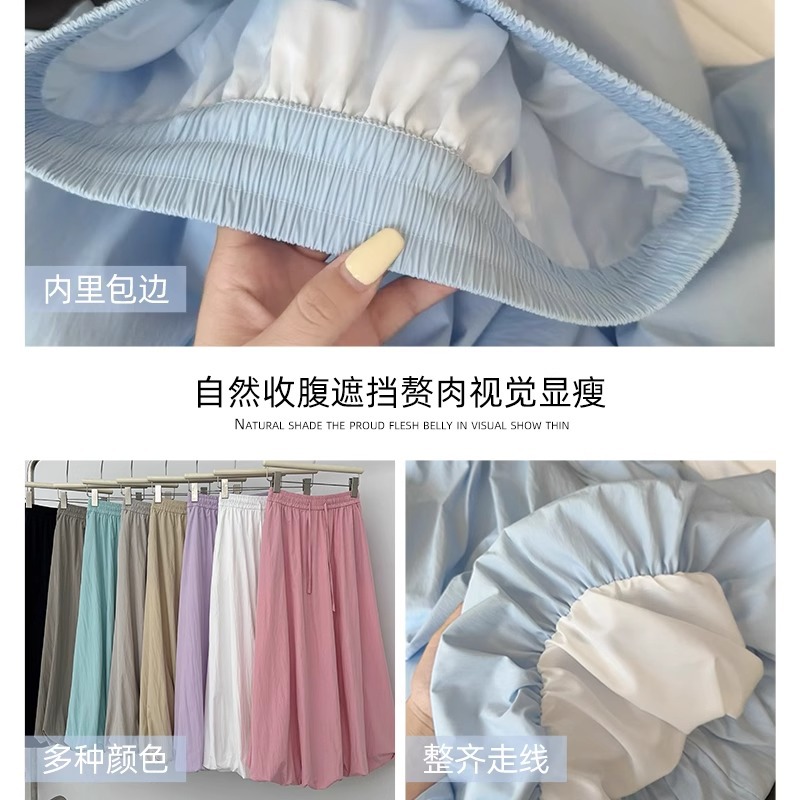 蓝色蓬蓬花苞裙女夏季薄款2025新款高腰显瘦a字冰丝灯笼裙半身裙