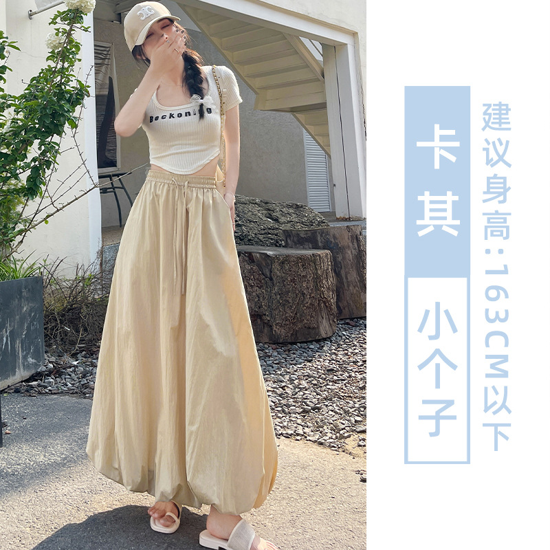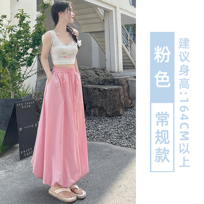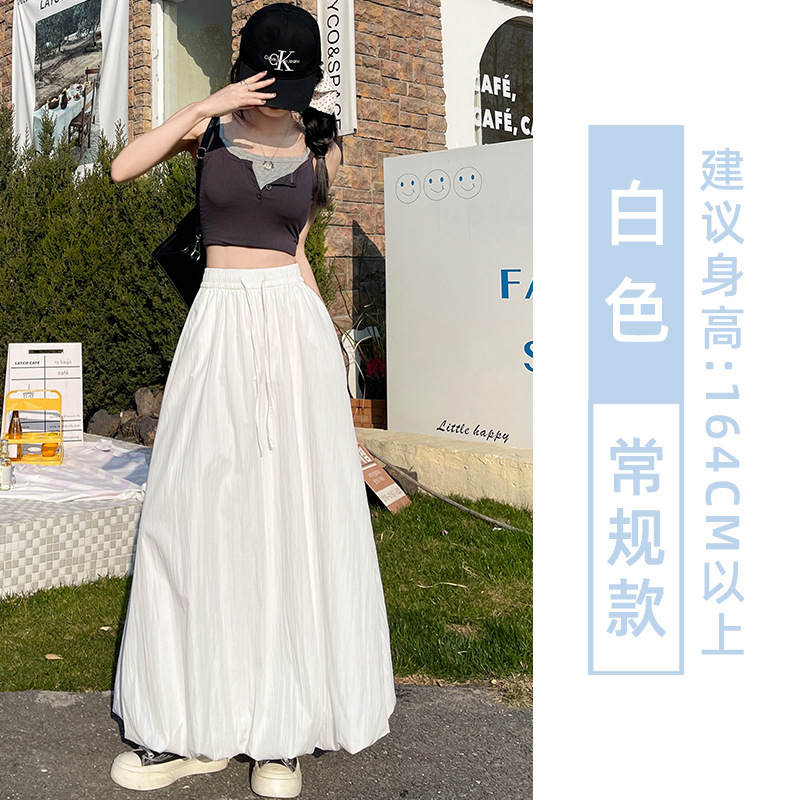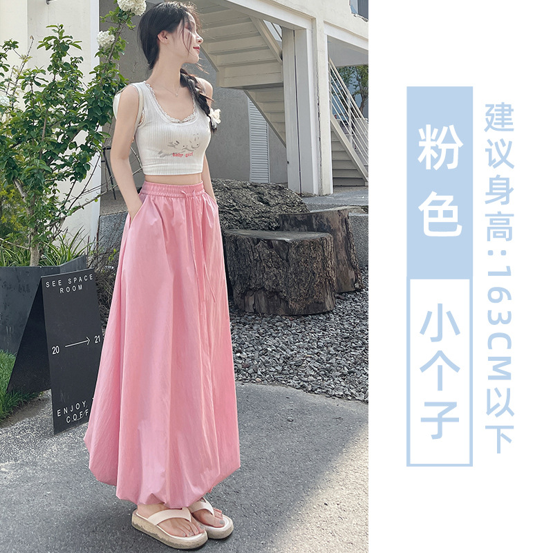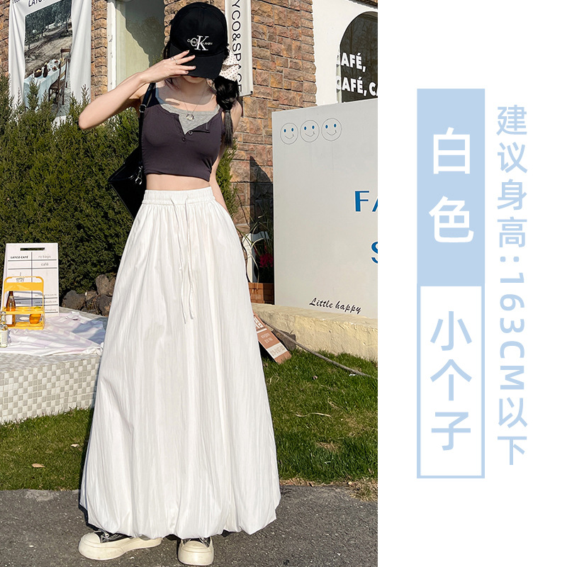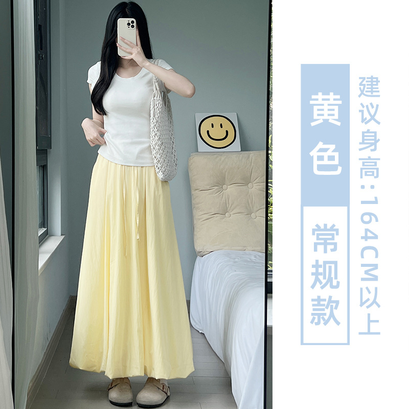 蓝色蓬蓬花苞裙女夏季薄款2025新款高腰显瘦a字冰丝灯笼裙半身裙