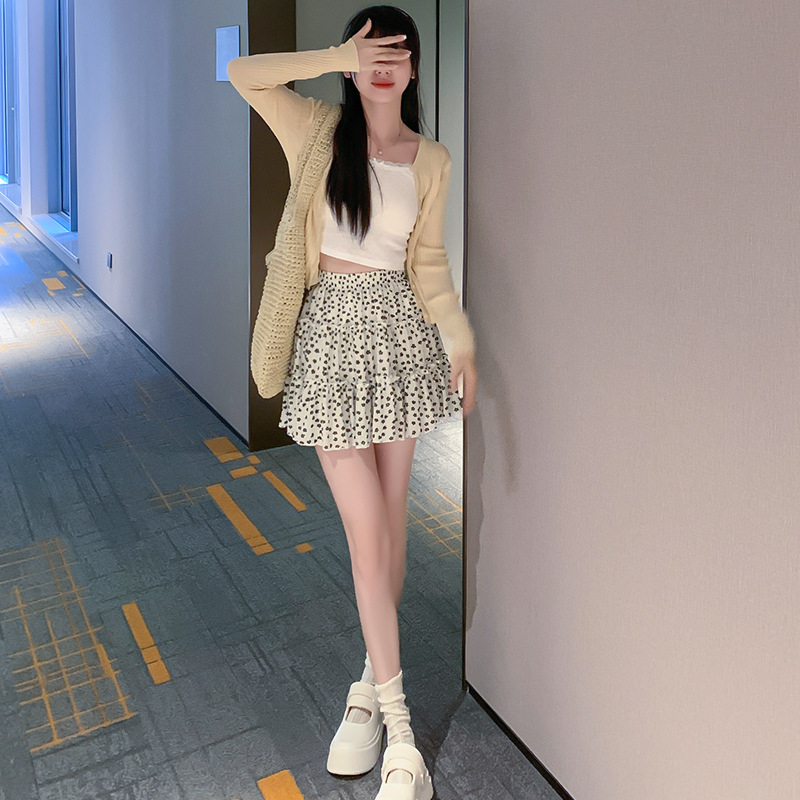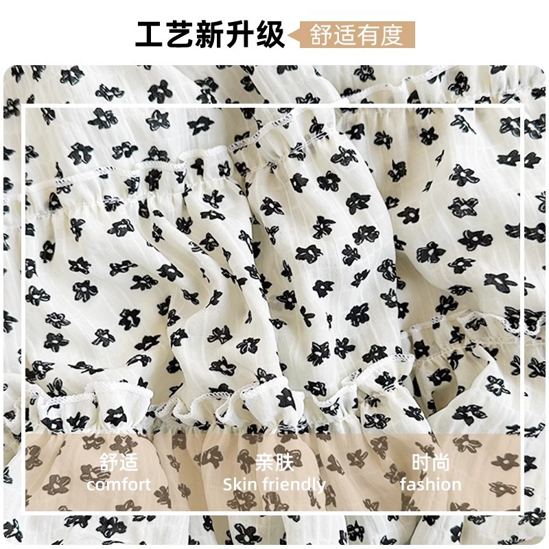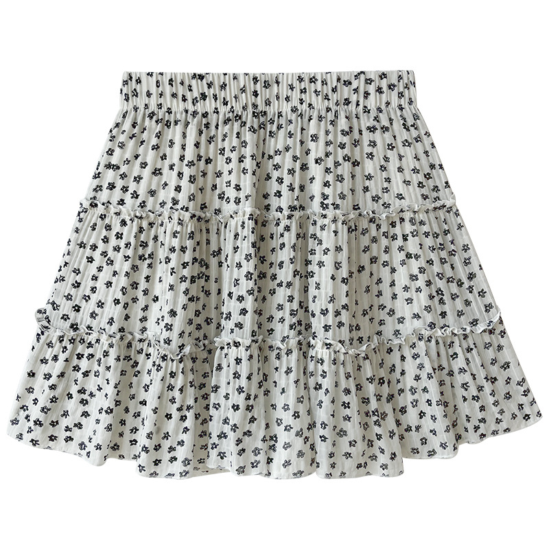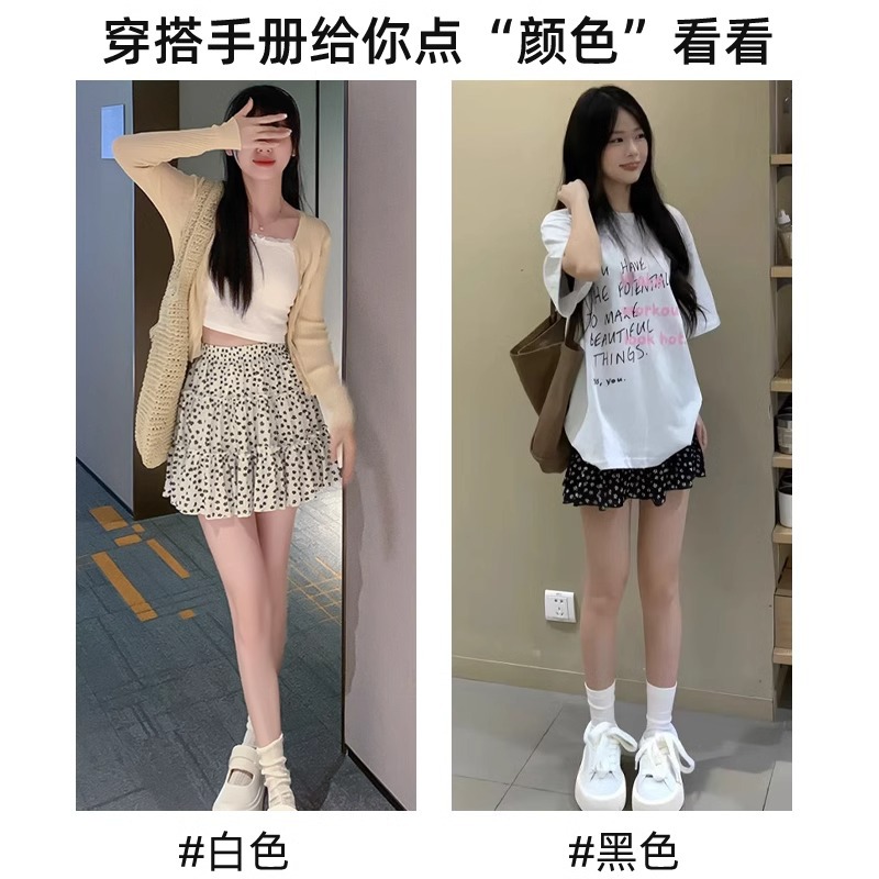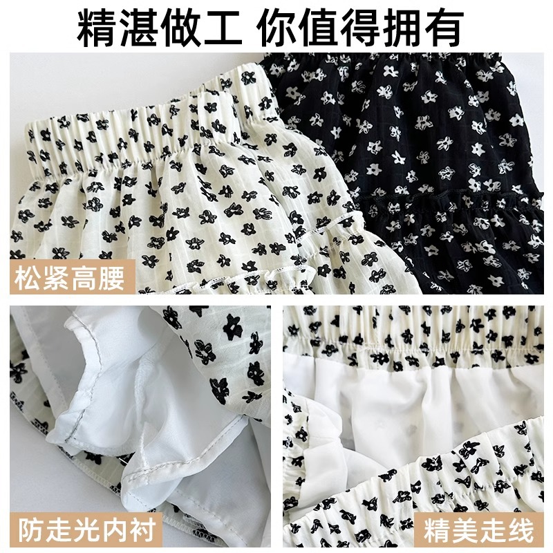 黑色小碎花半身裙女夏季2025新款松紧高腰a字裙小个子蛋糕短裙子