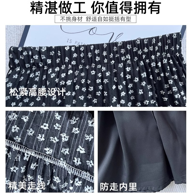 黑色碎花半身裙女夏季薄高腰a字显瘦设计感蛋糕裙小个子雪纺短裙