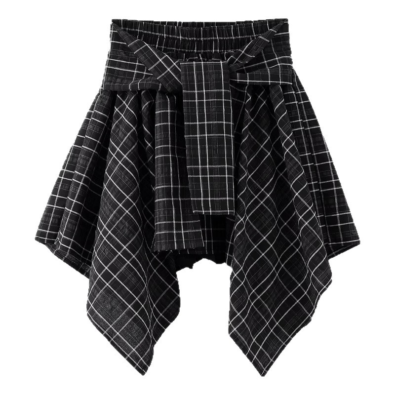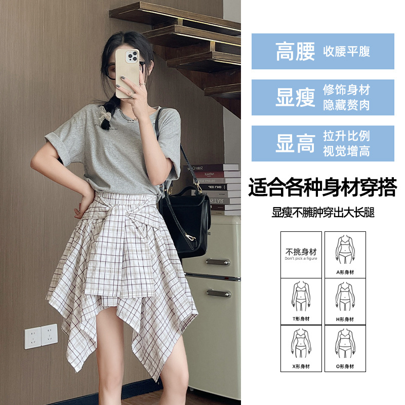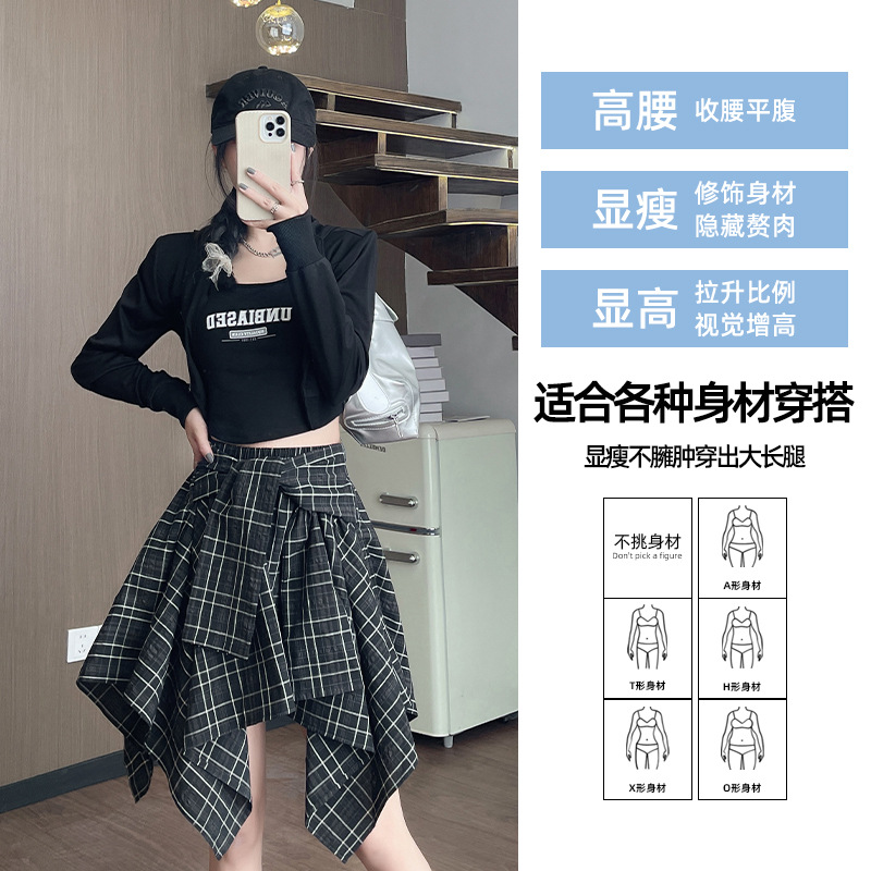 假衬衫格子半身裙女夏季2025新款高腰a字显瘦百搭不规则韩系短裙