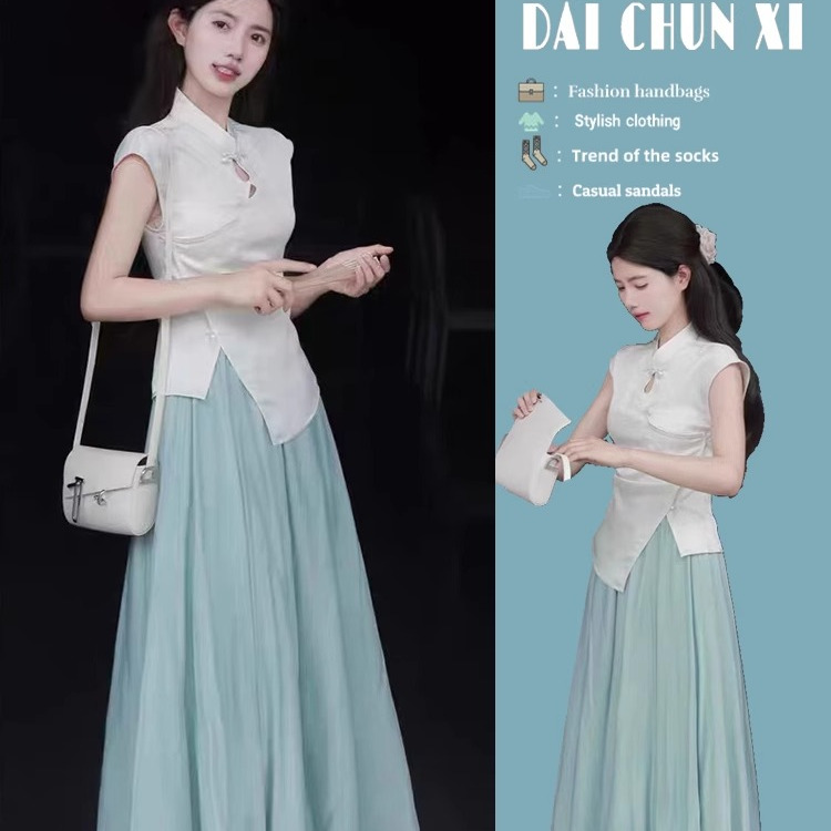 夏装穿搭一整套2025新款新中式上衣半身裙两件套显瘦减龄气质套装