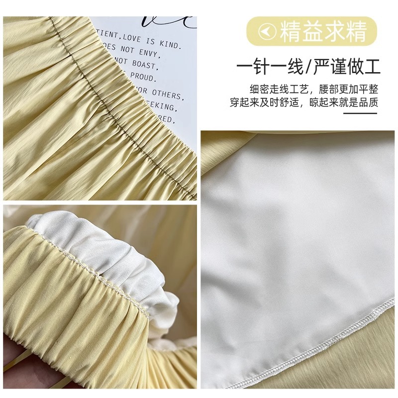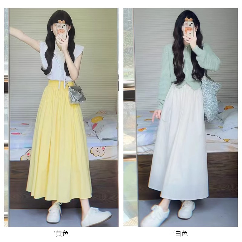 黄色半身裙女2025新款高腰a字大摆伞裙小个子遮胯显瘦百褶中长裙