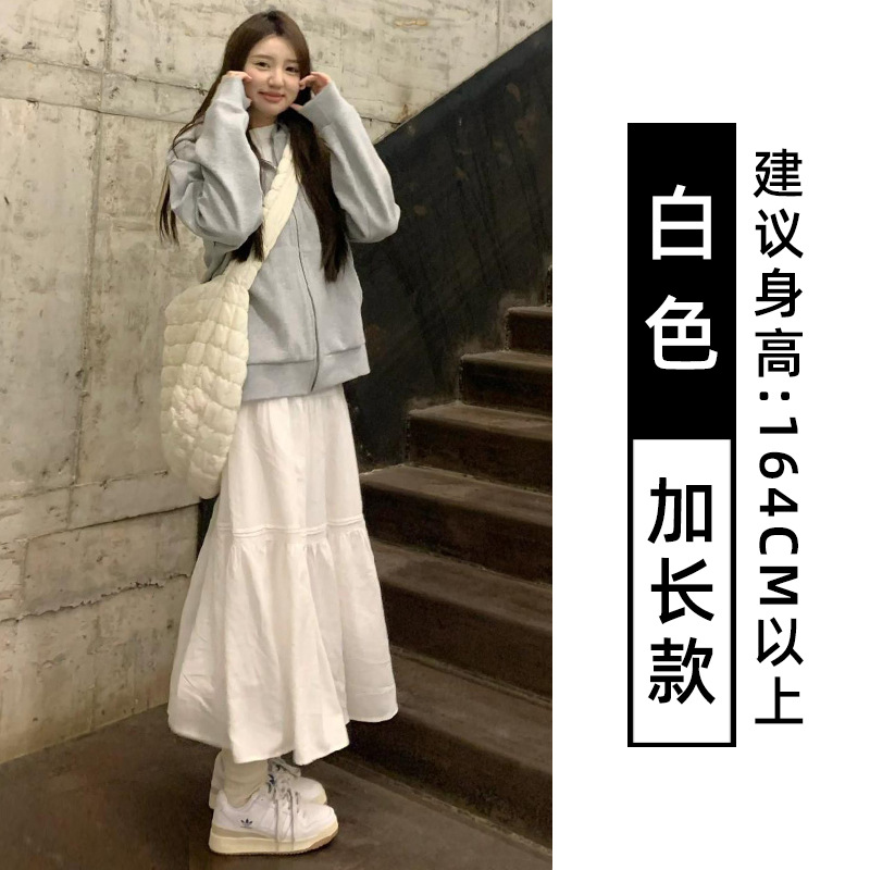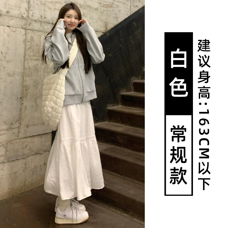 白色慵懒风垂感半身裙女春秋2025新款遮肉显瘦高级感气质休闲长裙