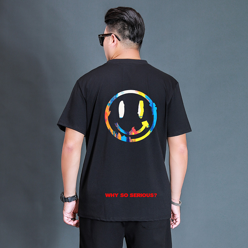 夏季加肥加大男士笑脸印花潮流短袖T恤胖子体恤1411