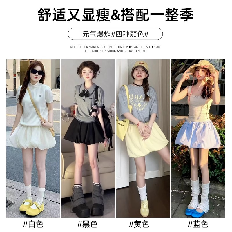 黑色花苞短裙女夏季2025新款高腰显瘦a字蓬蓬裙法式冰丝灯笼裙裤