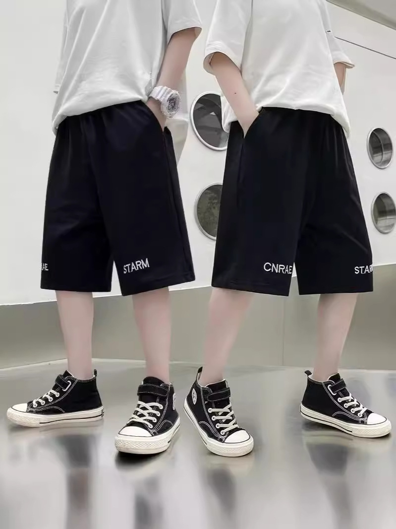 男童黑色夏季新款童装短款潮流宽松运动裤五分裤儿童直筒休闲裤子