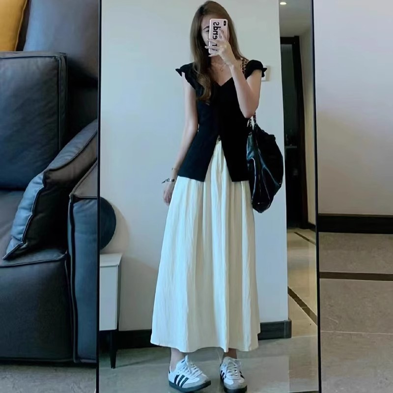 白色半身裙女夏季2025年新款高腰休闲舒适中长款显瘦小个子长裙