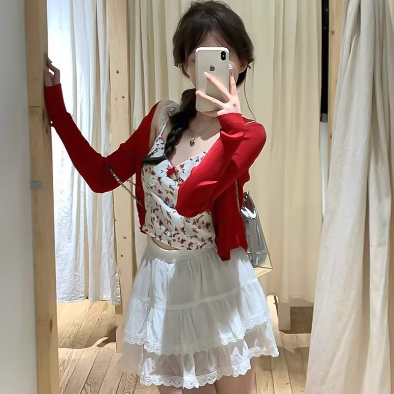 白色蕾丝花边蓬蓬短裙女夏季新款高腰显瘦a字裙甜辣风蛋糕半身裙