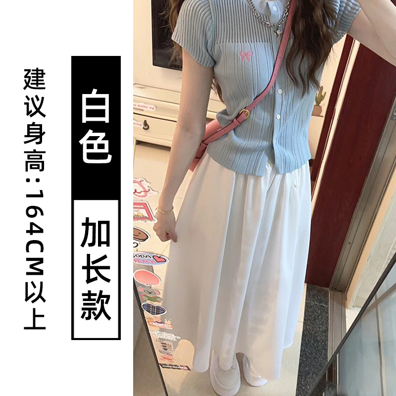 白色温柔气质感半身裙女夏季薄2025新款高腰垂感显瘦a字百褶长裙