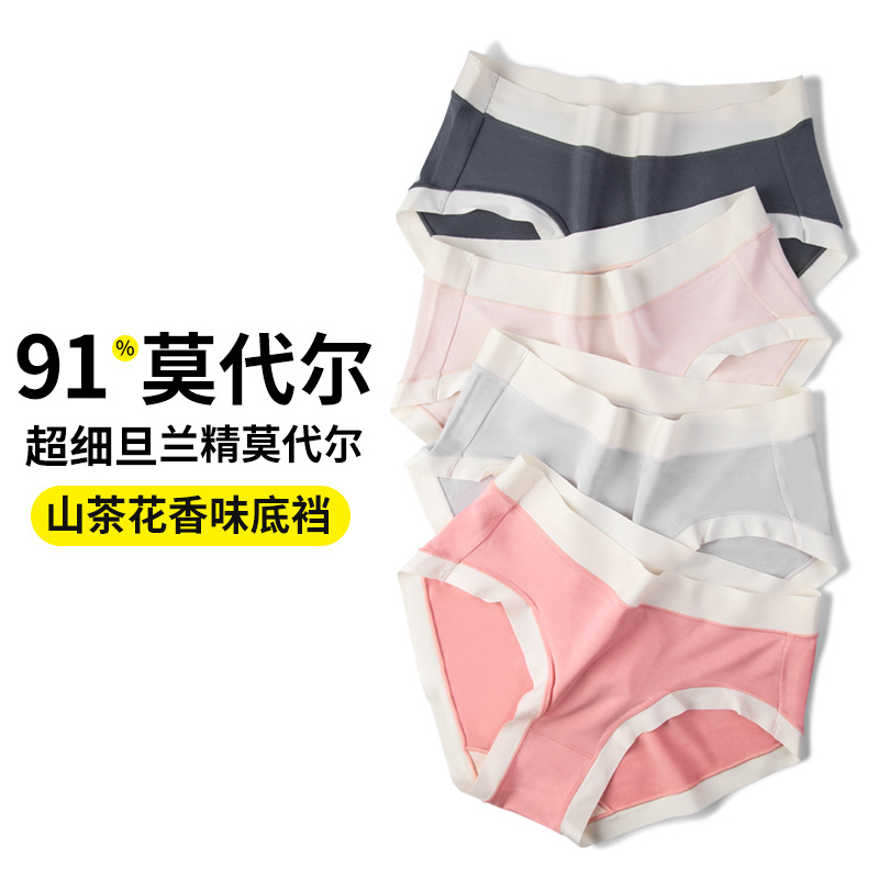 蕉桔有鲜内莫代尔女士内裤中腰高弹不勒腿山茶花香抗菌档三角底裤
