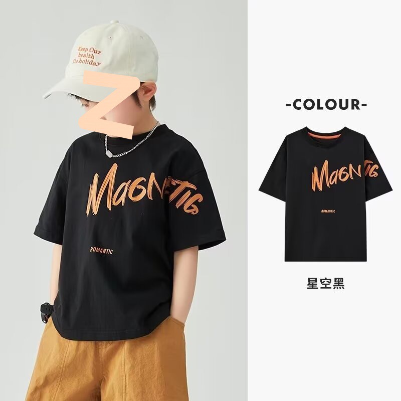 跨境男童短袖T恤夏装新款儿童中大童舒适大字母印花潮流上衣