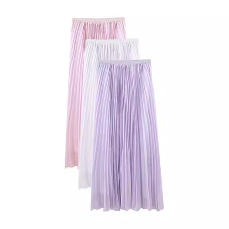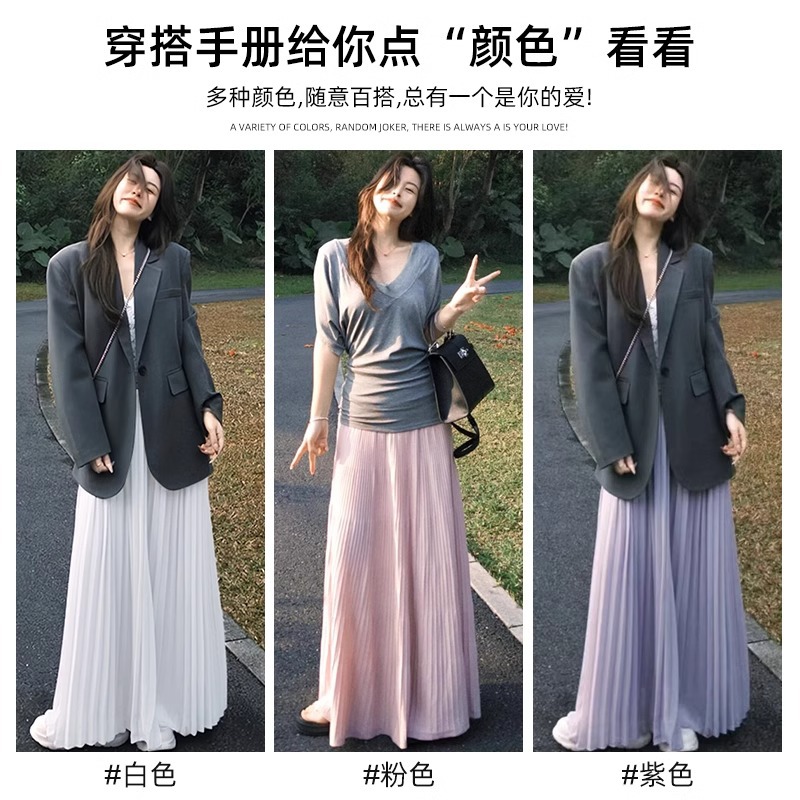 紫色百褶裙女夏季薄款2025新款气质高腰a字纱裙小个子褶皱半身裙