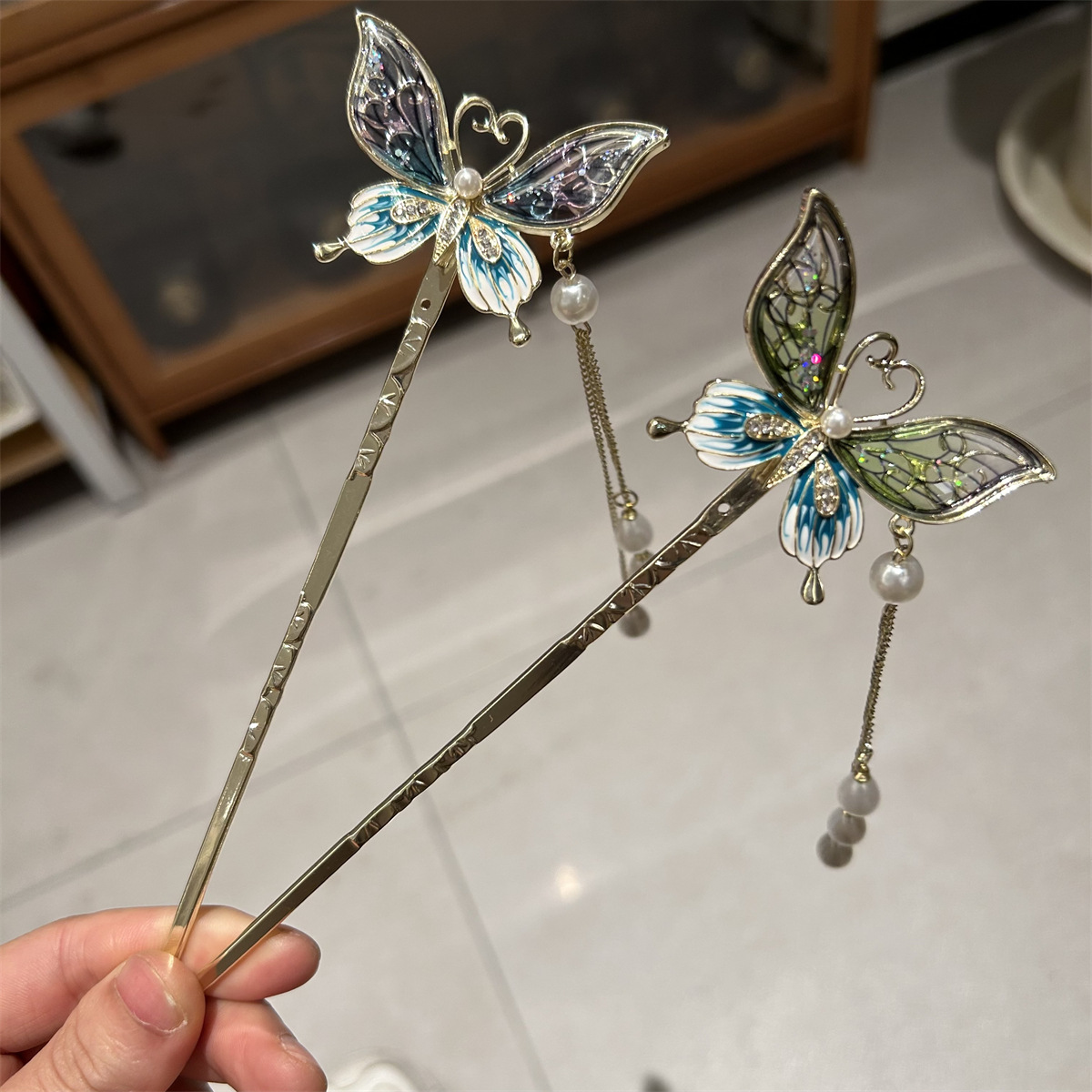 水晶蝴蝶古风流苏盘发发簪汉服头饰后脑勺扎丸子头簪子高级感