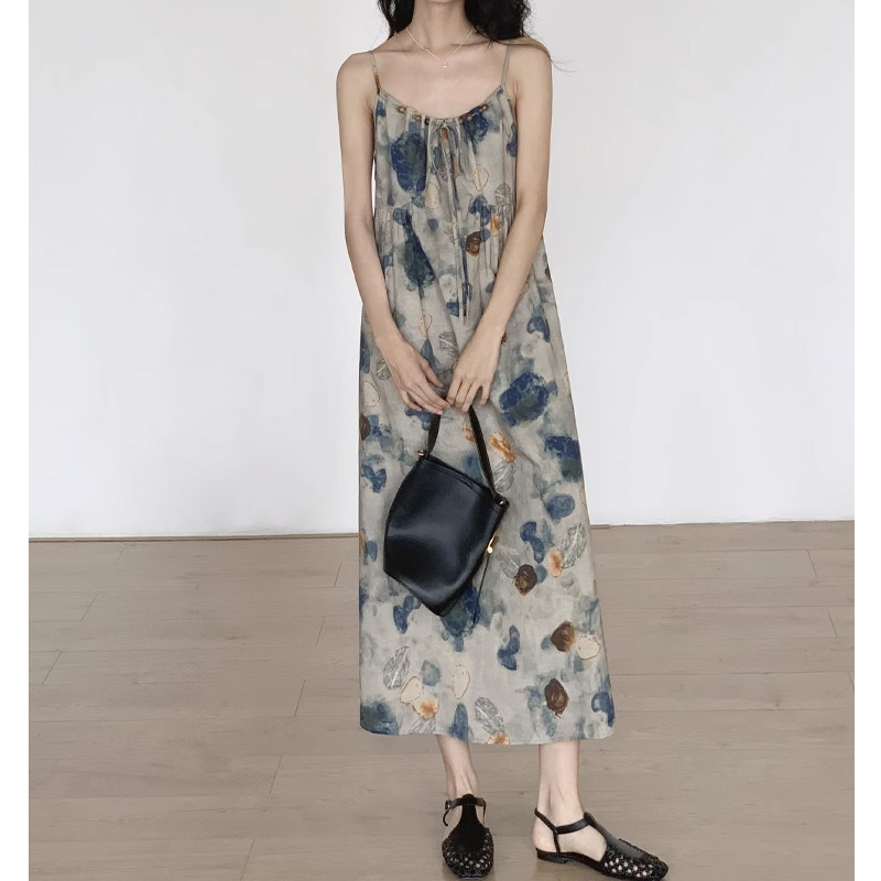 新中式初春吊带连衣裙设计感小众法式吊带裙修身长款裙