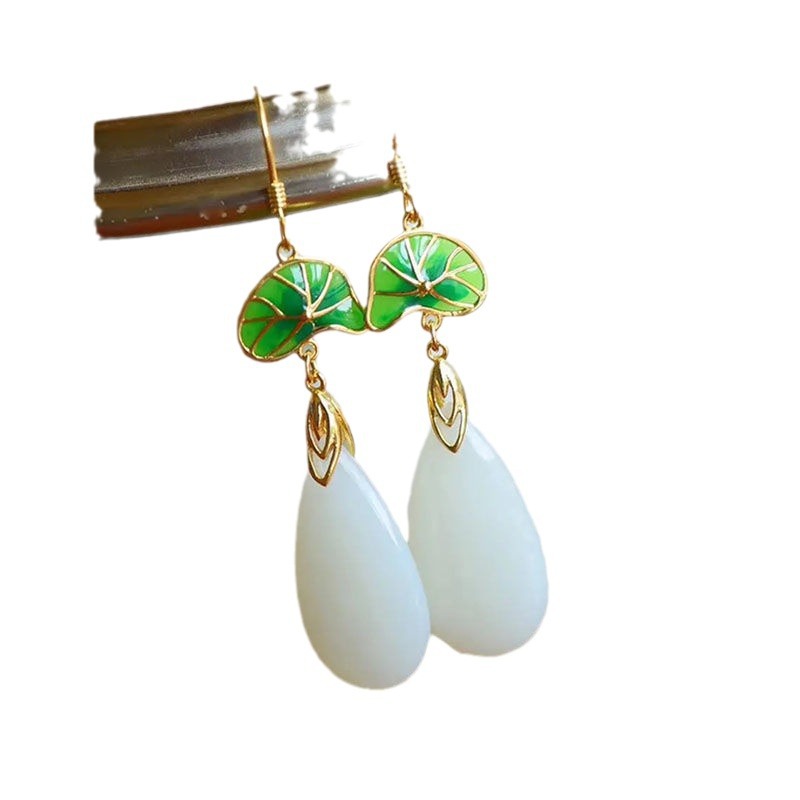 天然和田水滴耳坠复古S925纯银荷叶耳环女宫廷风简约送妈妈