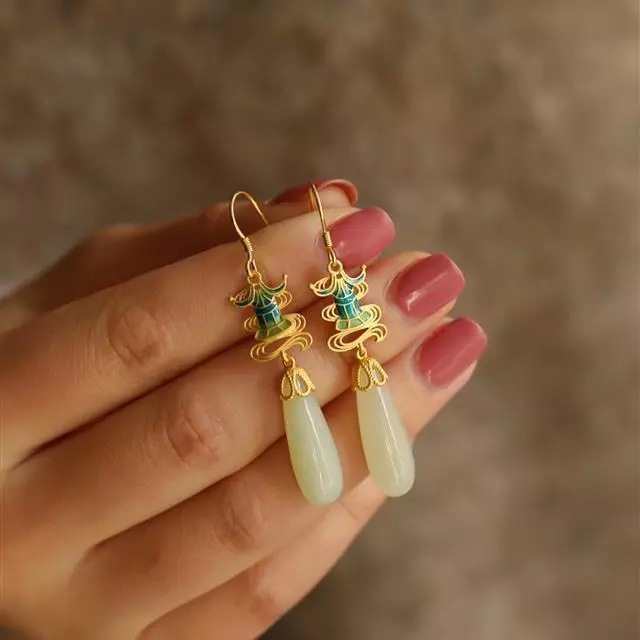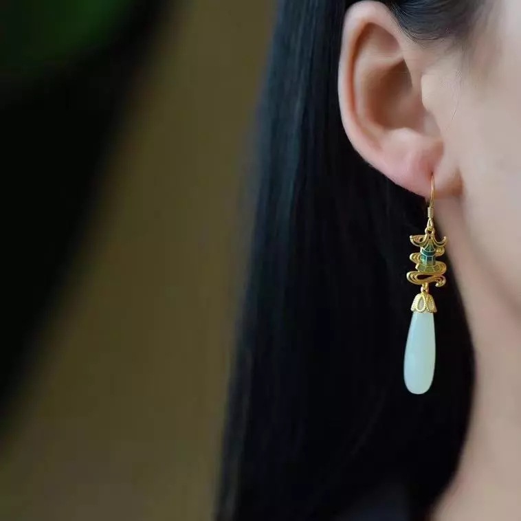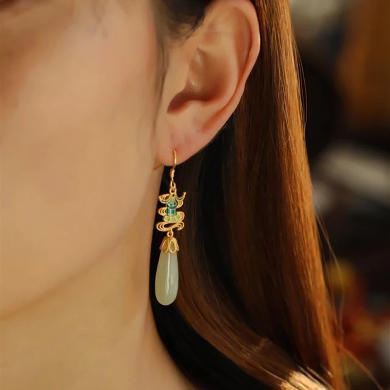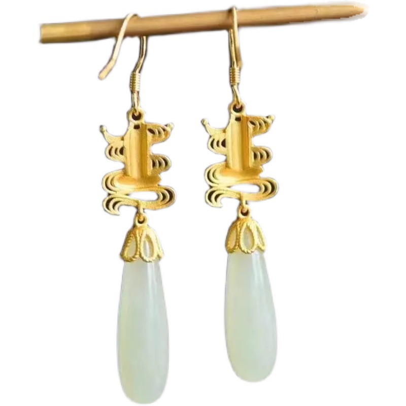 蓬莱仙楼 白玉水滴耳坠显脸瘦感气质耳环复古宫廷中国风925银耳饰