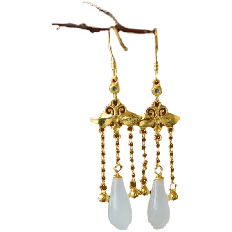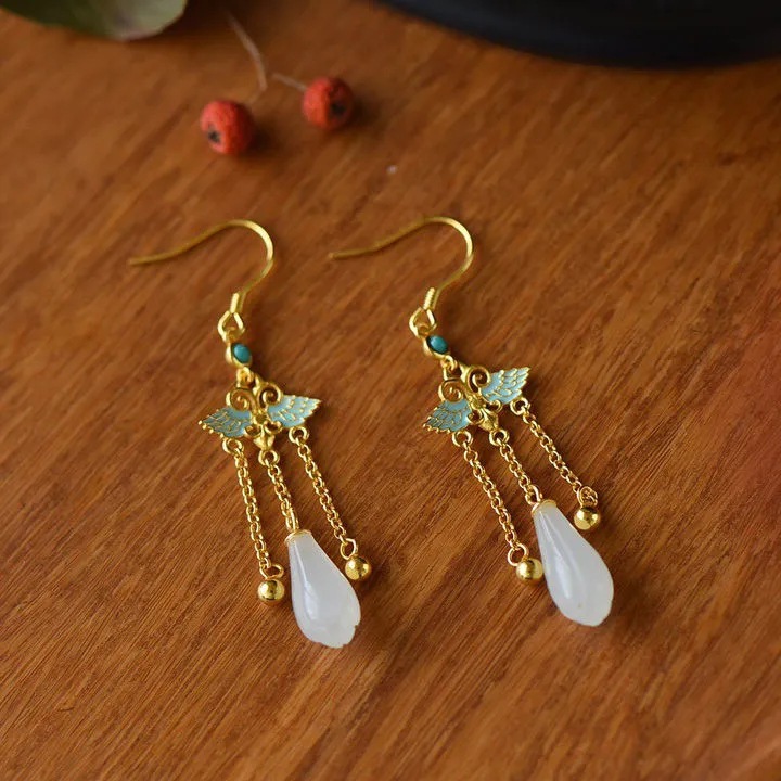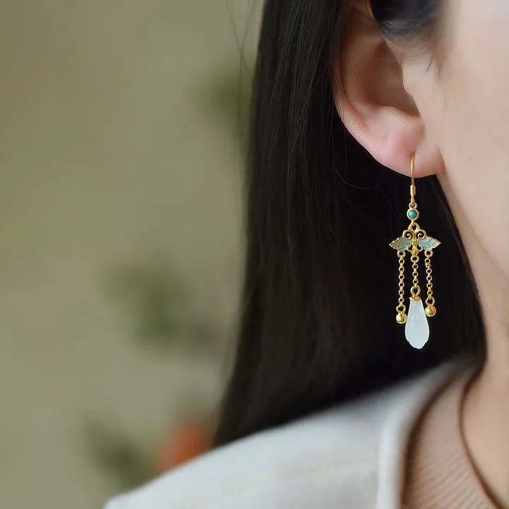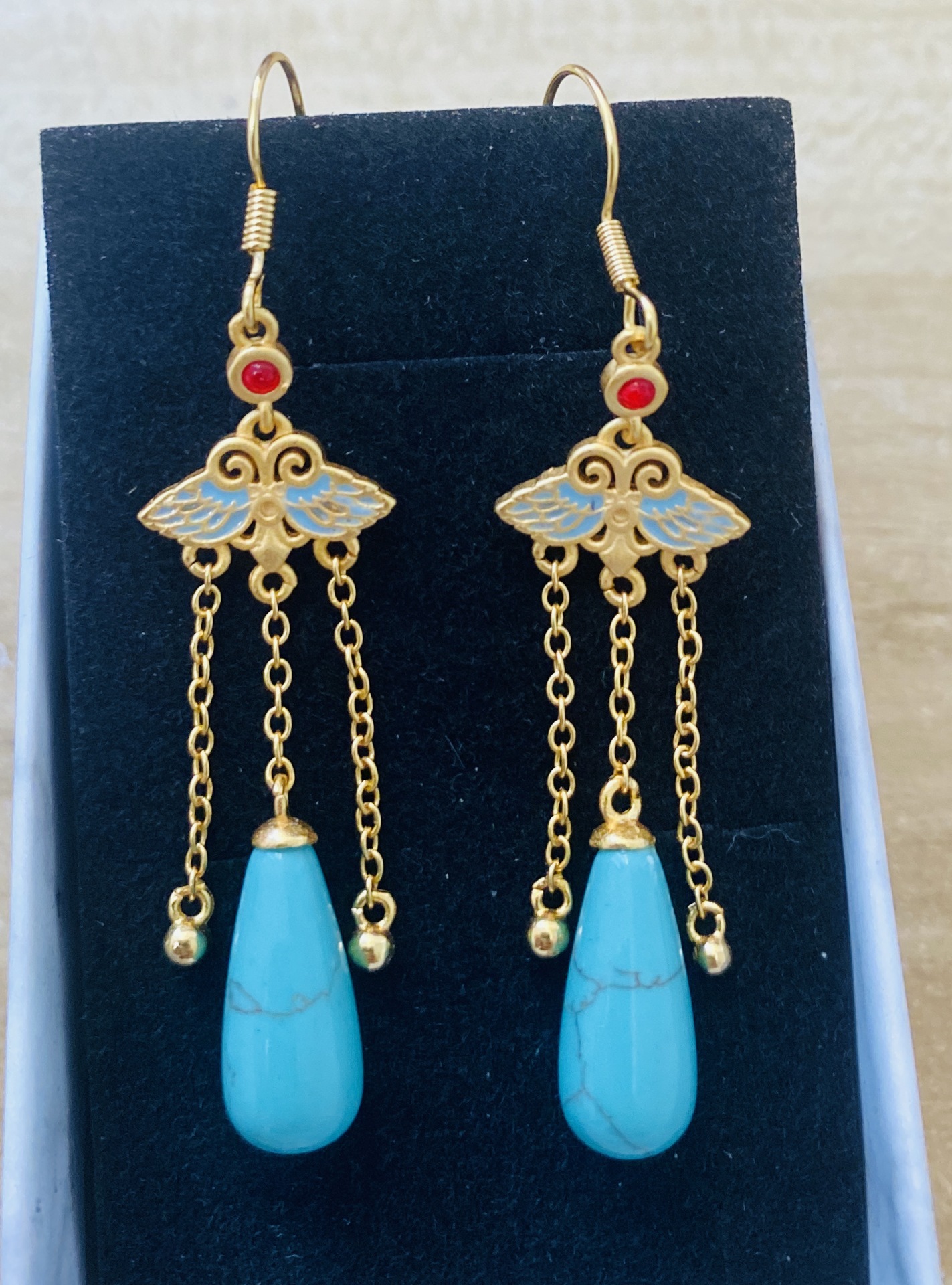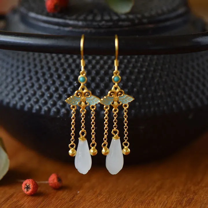 江南初见民族风耳环古法镀金珐琅工艺耳饰镶嵌绿松石流苏耳坠