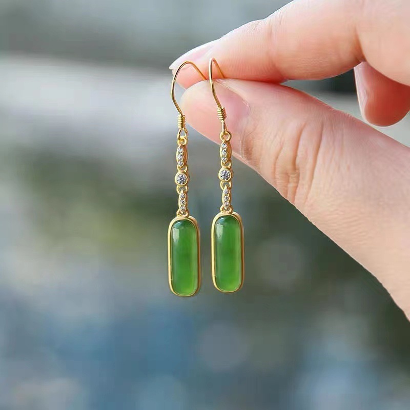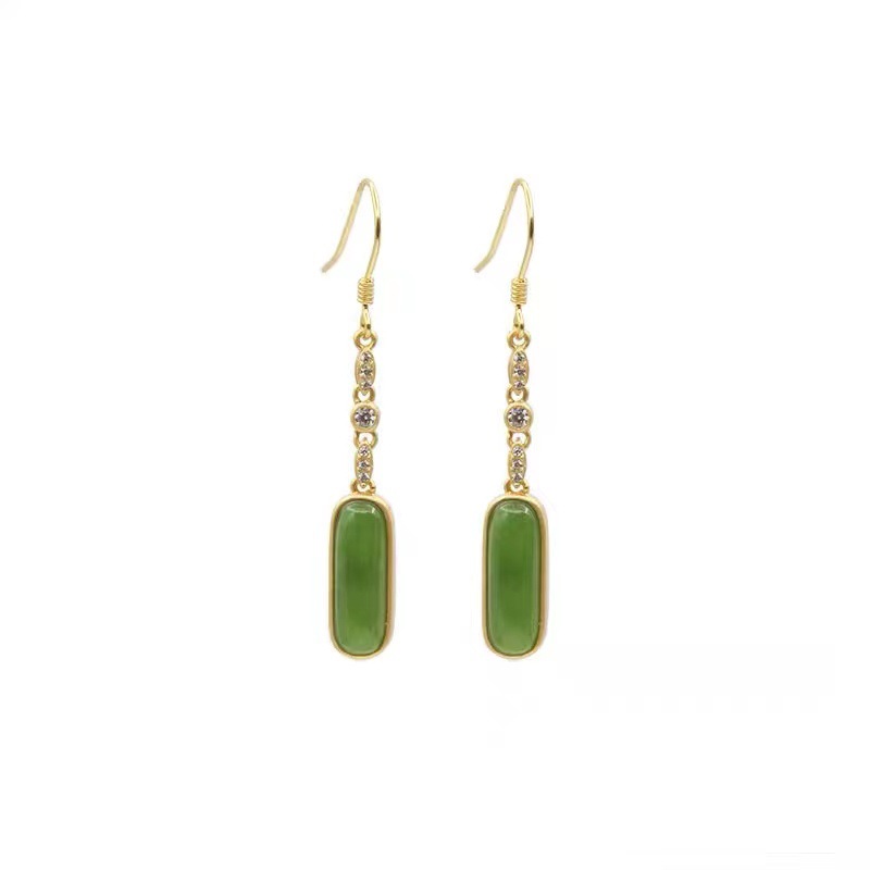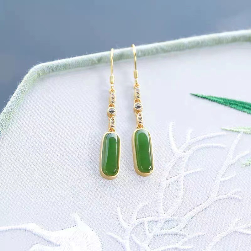 青璃丨天然和田玉碧玉长条耳环925纯银玉石耳坠古典大气长款耳饰