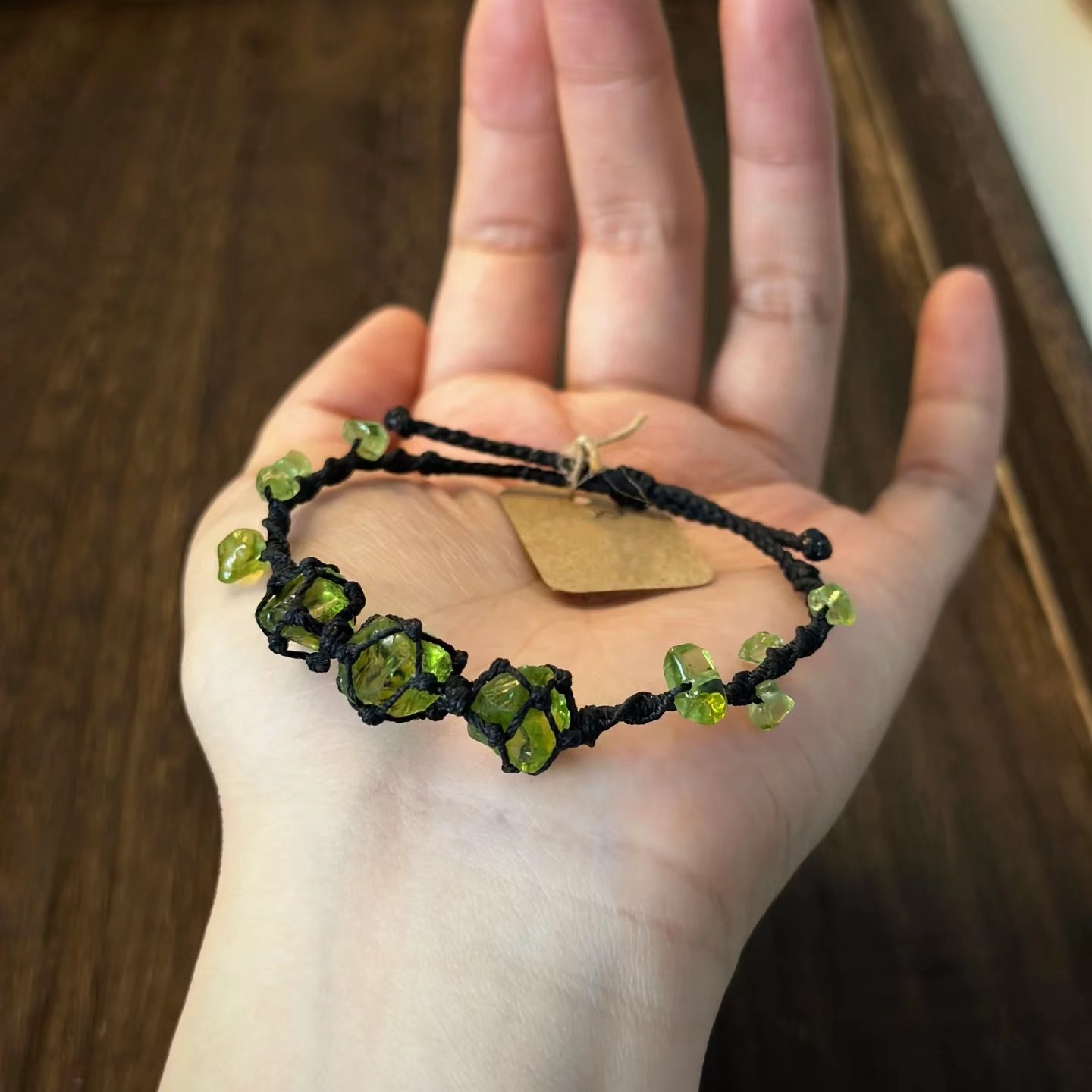 原创macrame合成水晶纯手工手绳橄榄绿高颜值小众编织网兜手链