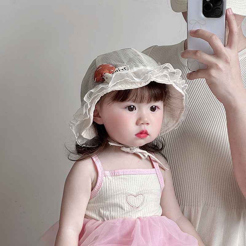 宝宝帽子夏天透气网纱宫廷帽韩版蕾丝花边公主帽婴幼儿出游遮阳帽