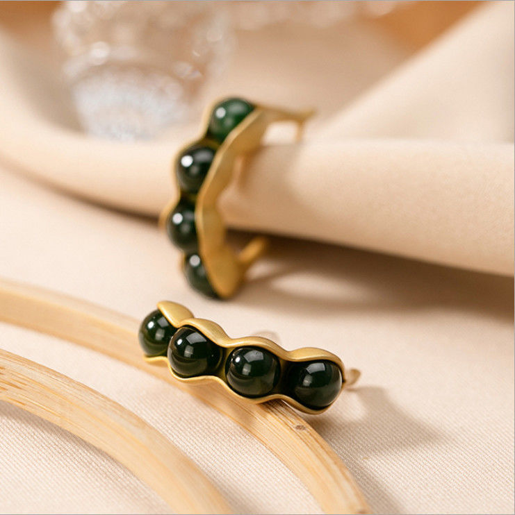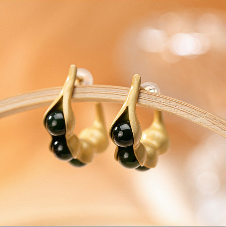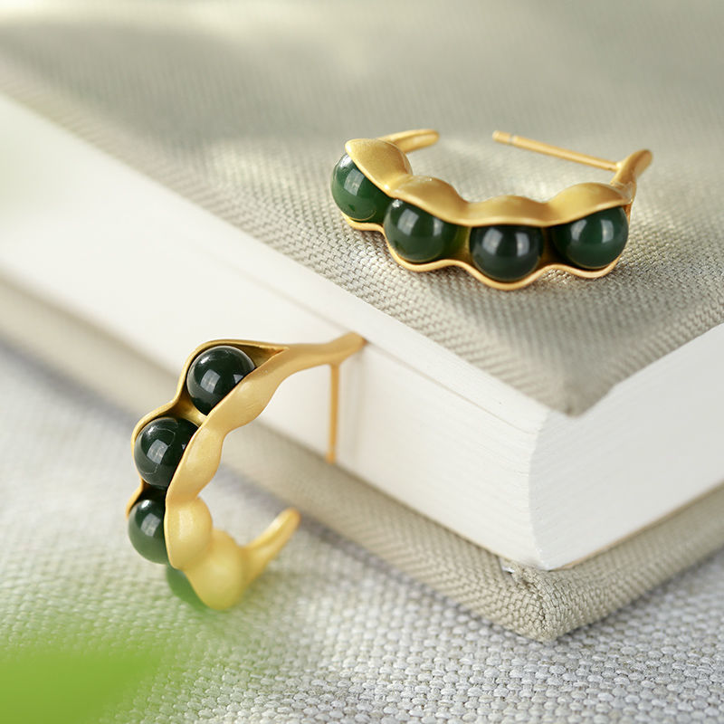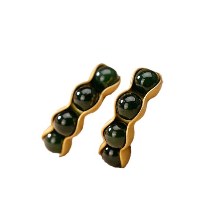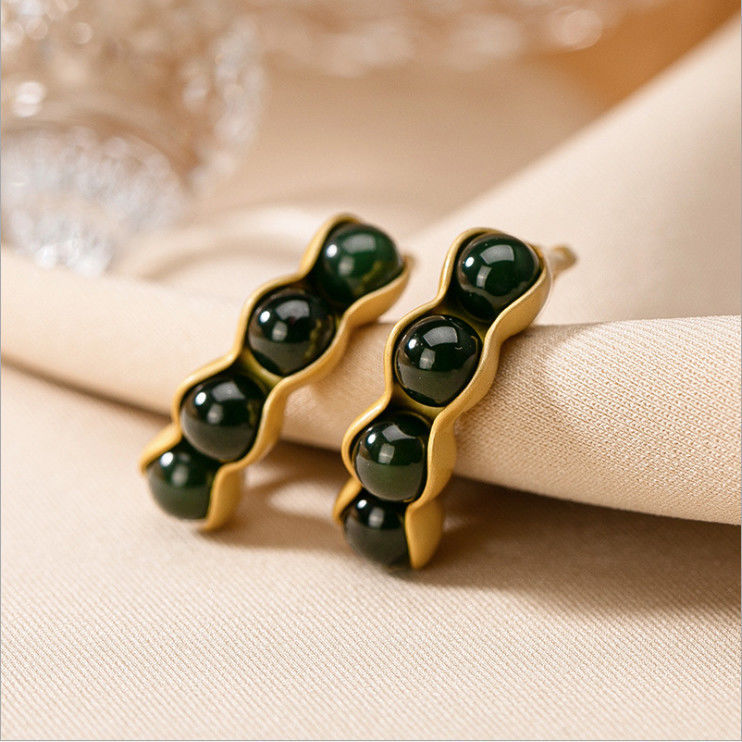 四季平安碧玉豌豆莱耳环s925纯银故宫上新白玉石宫廷风搭配汉服