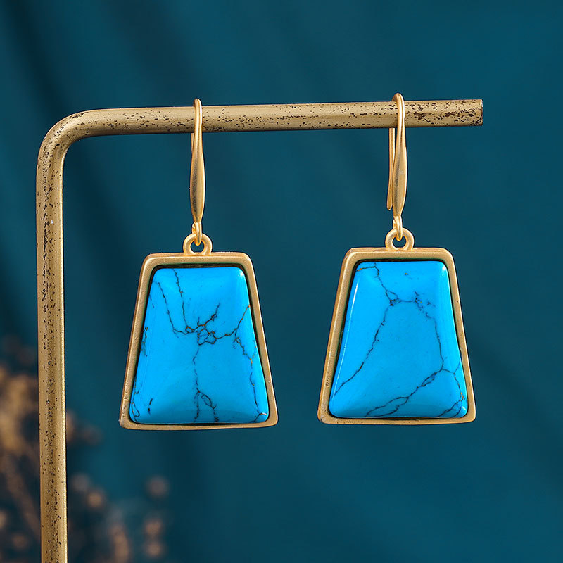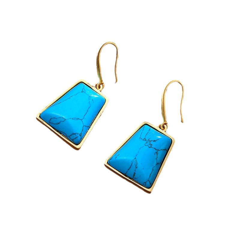 中国风古典汉服旗袍配饰古法镀金镶嵌绿松石耳环耳坠女士宫廷风