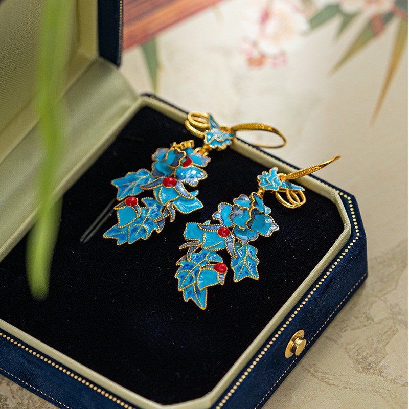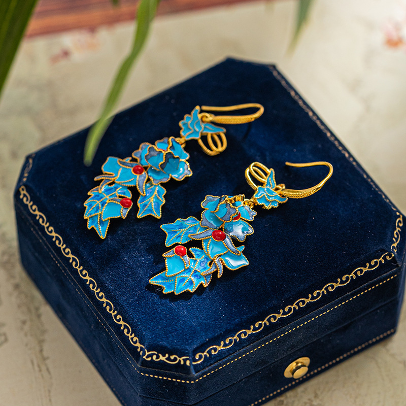 国潮中国风个性花丝耳环珐琅工艺桃花朵朵耳环汉服百搭配饰