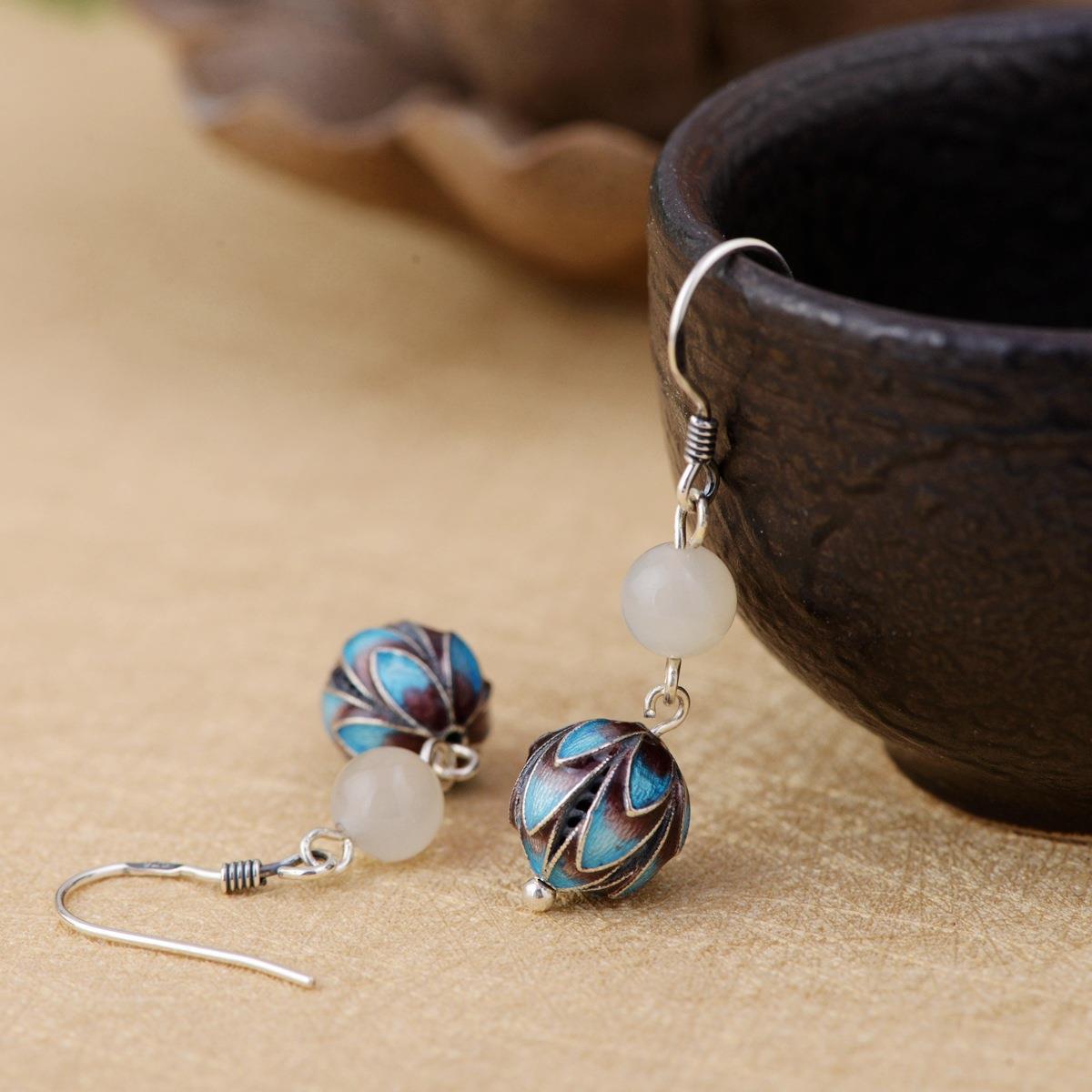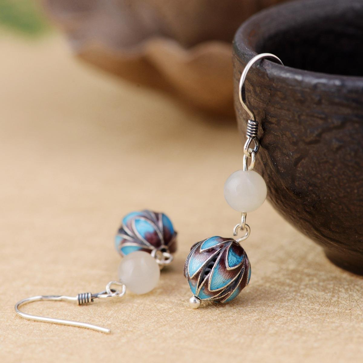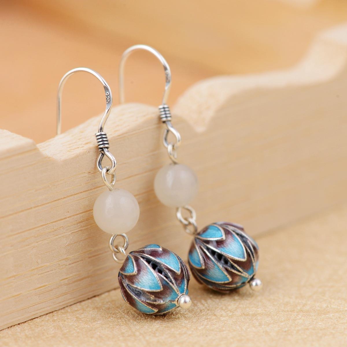 银耳饰品天然玉石饰品景泰蓝女款花丝耳坠耳环耳钩民族风送长辈