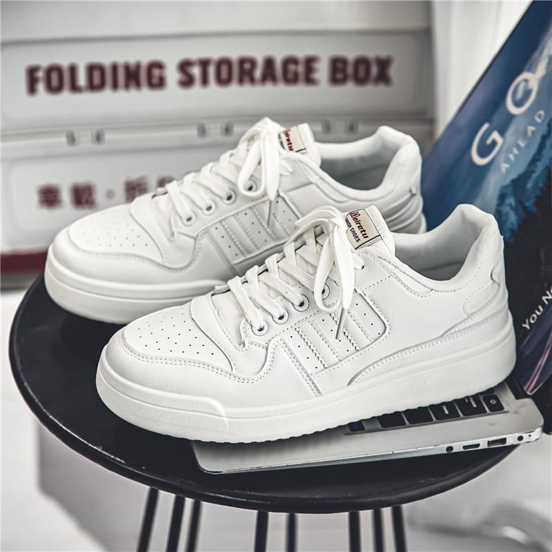 男鞋四季新款低帮板鞋男士休闲运动鞋子百搭青少年皮面小白鞋