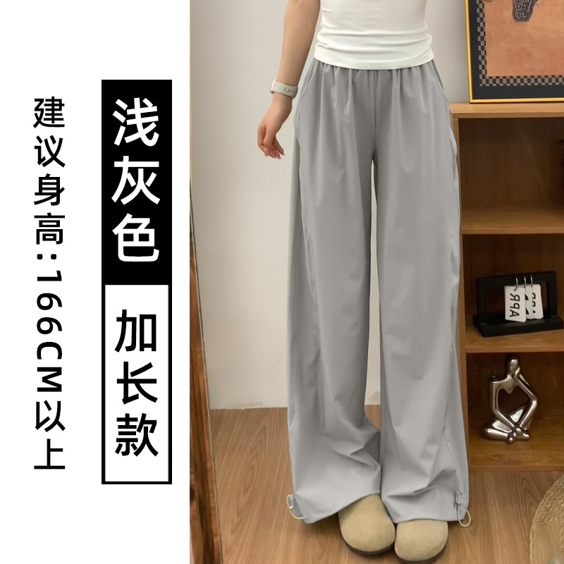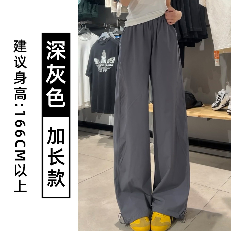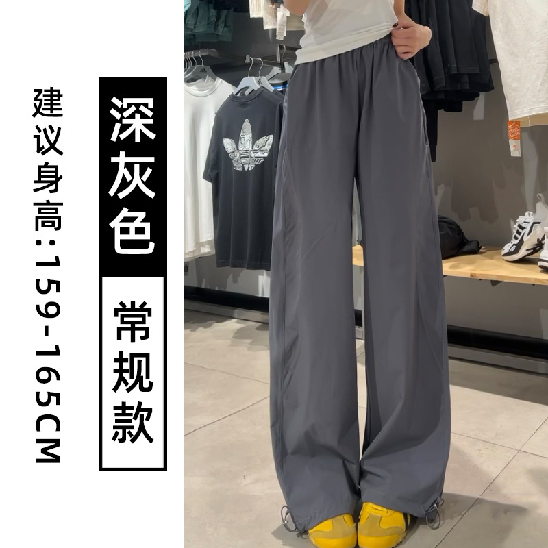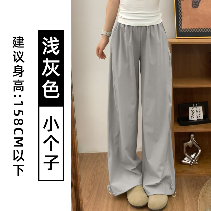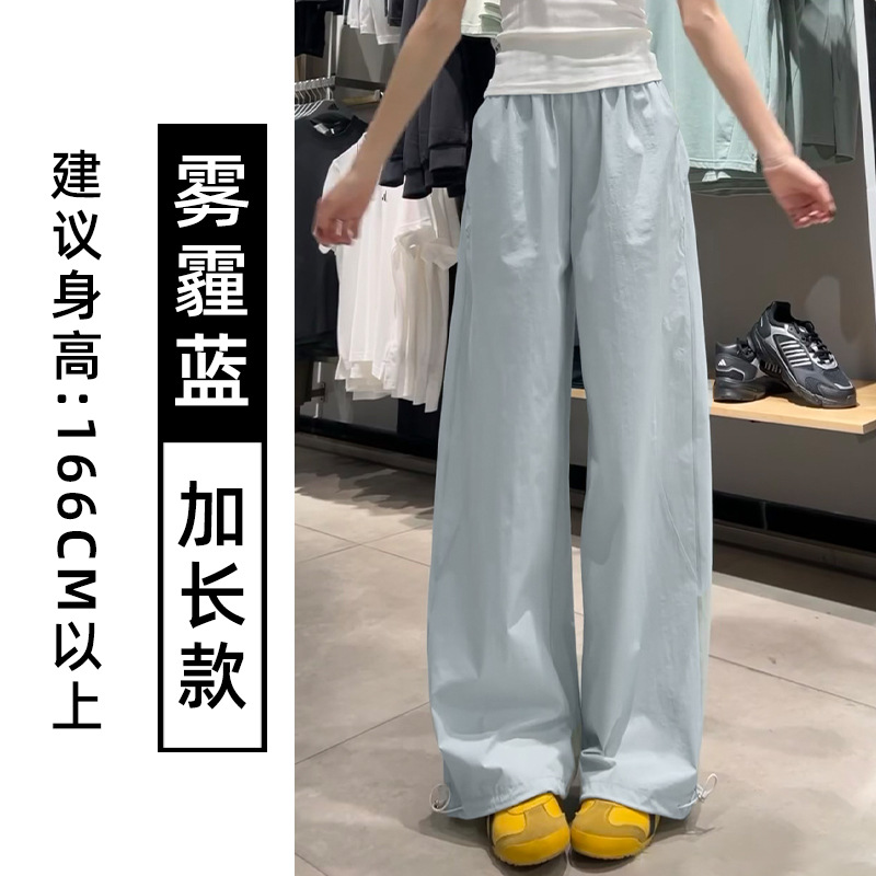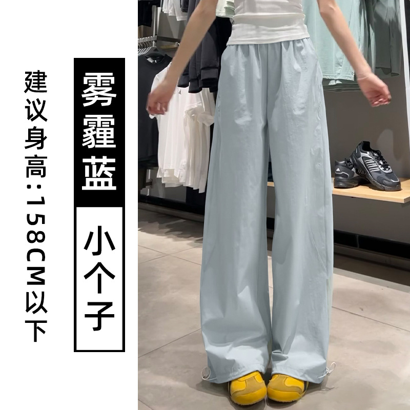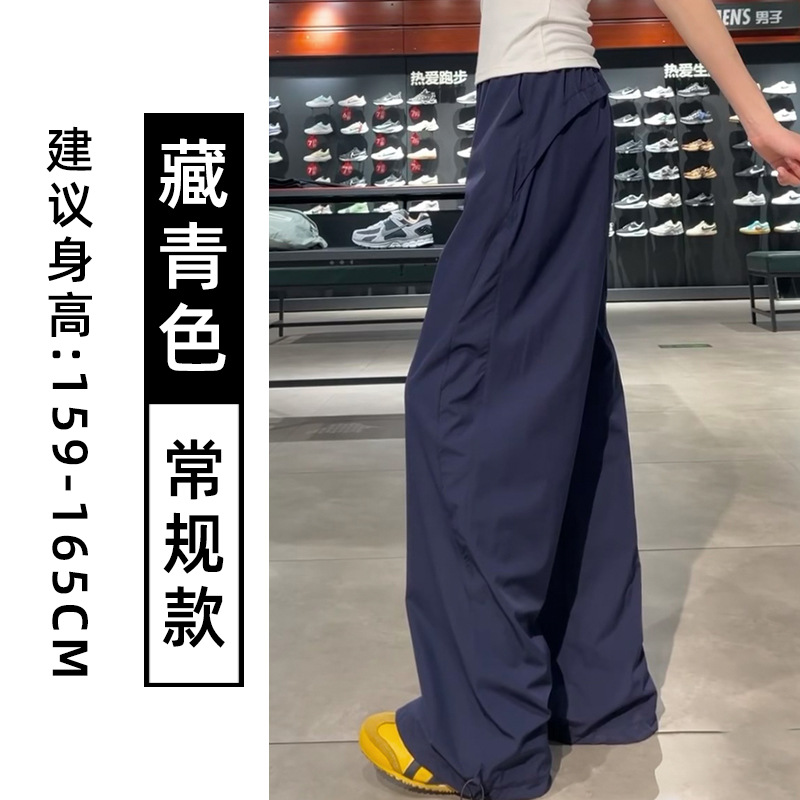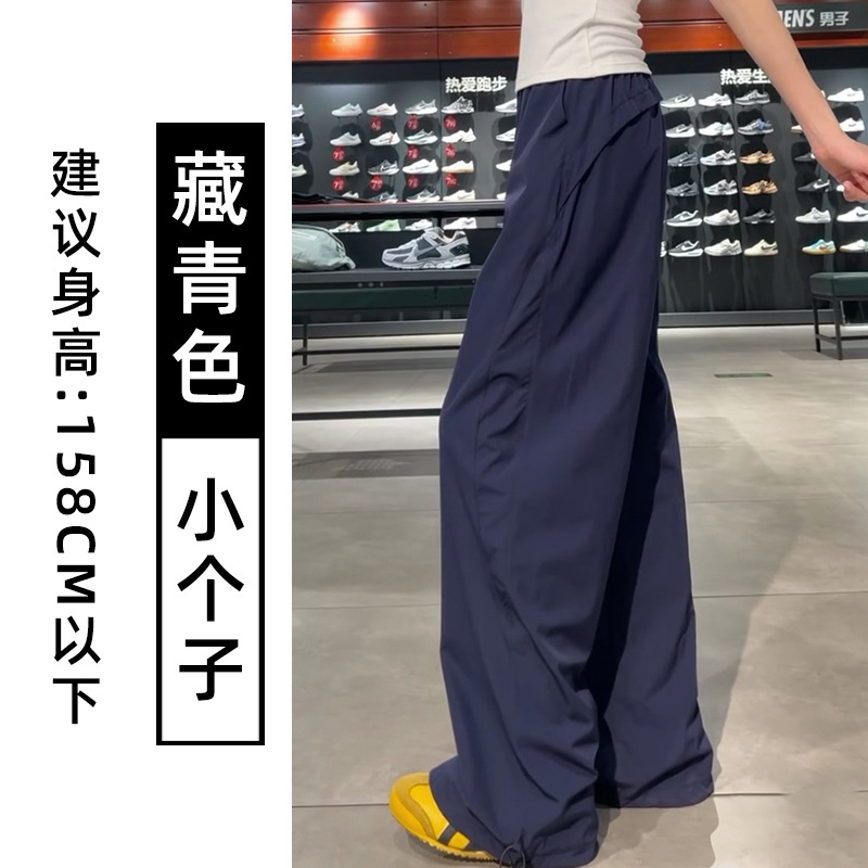 蓝色速干工装裤女夏季2025新款高腰宽松直筒小个子美式休闲运动裤