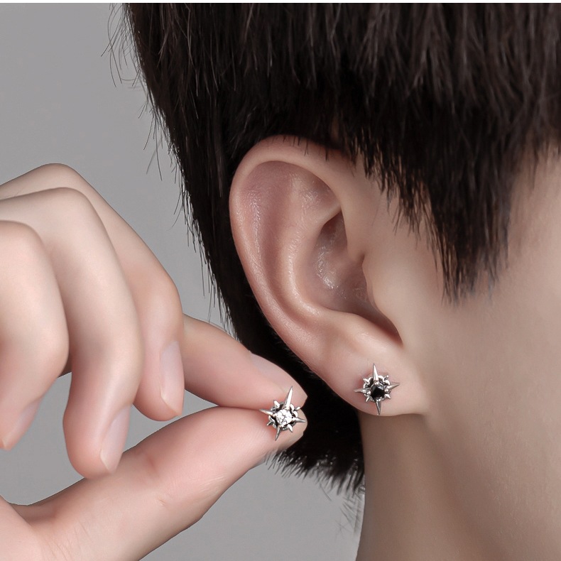 s925纯银北极星男士耳钉镶钻冷淡银耳饰 男生痞帅潮流养耳洞耳钉