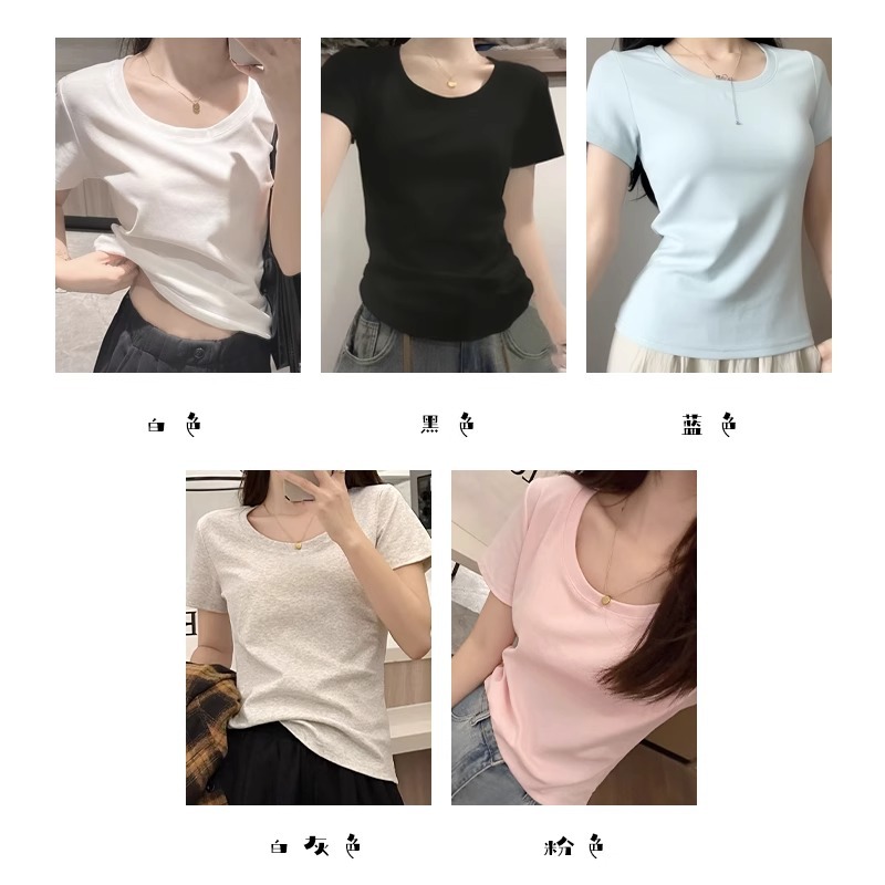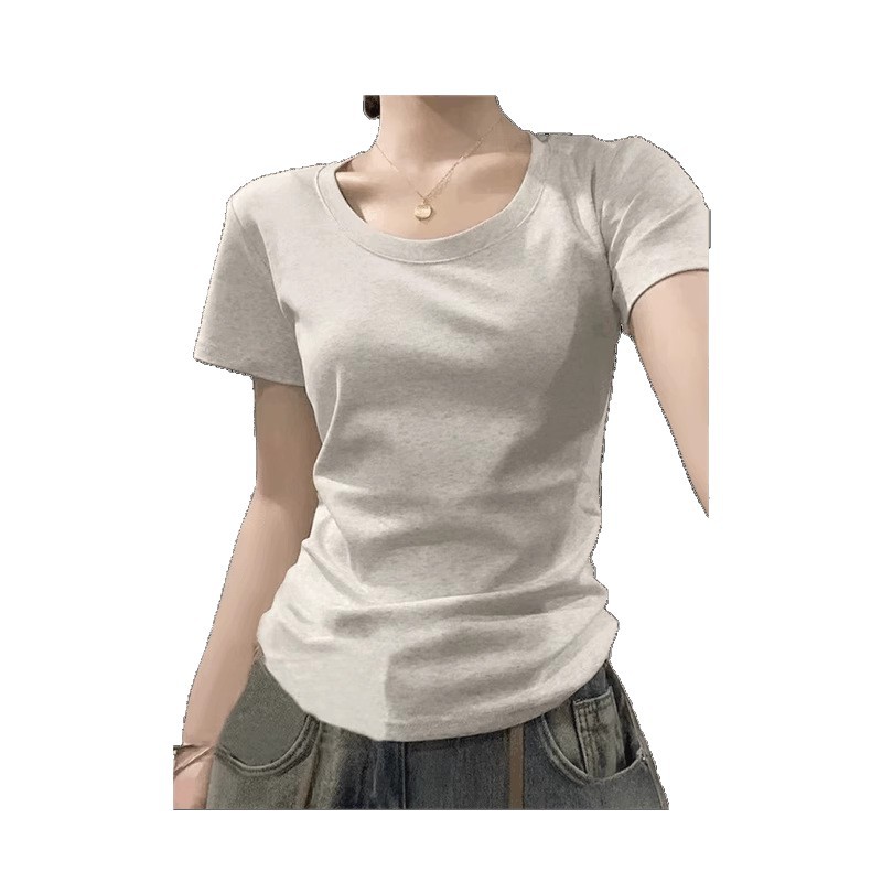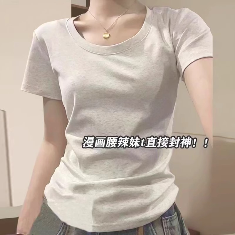 美式正肩圆领短袖T恤女夏季薄款2025新款辣妹修身显瘦打底短上衣