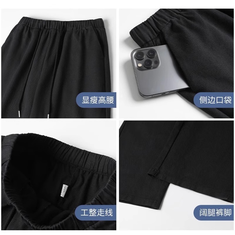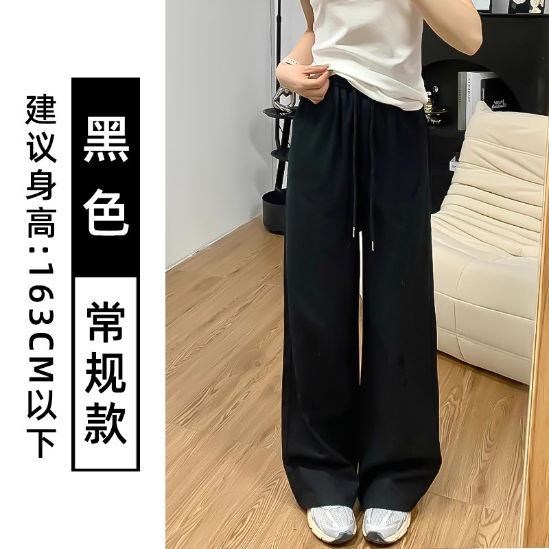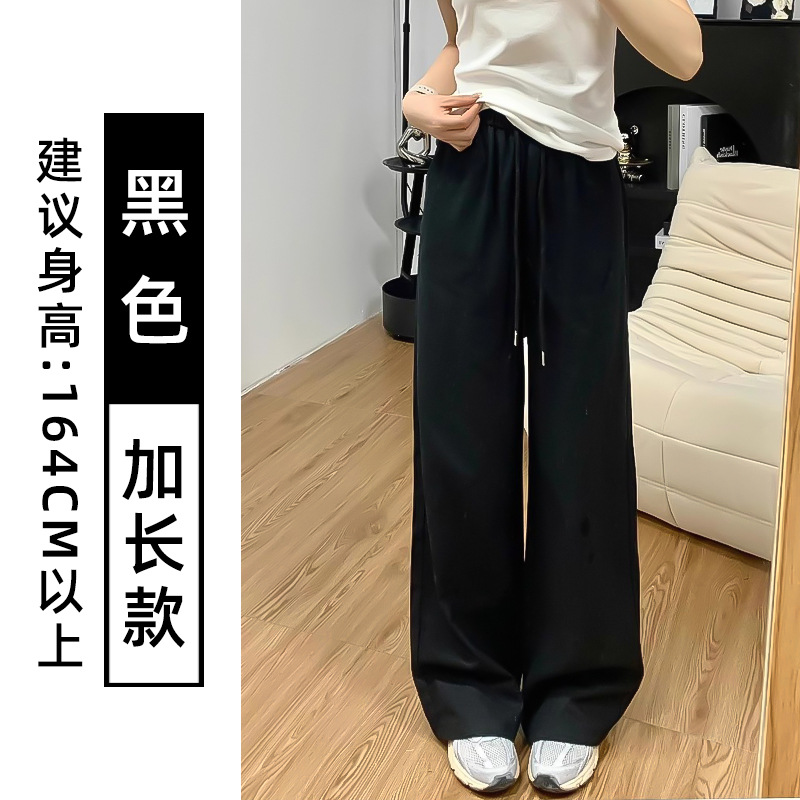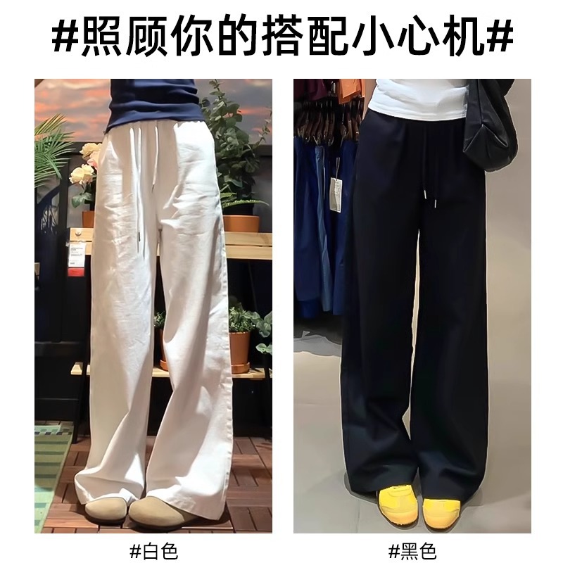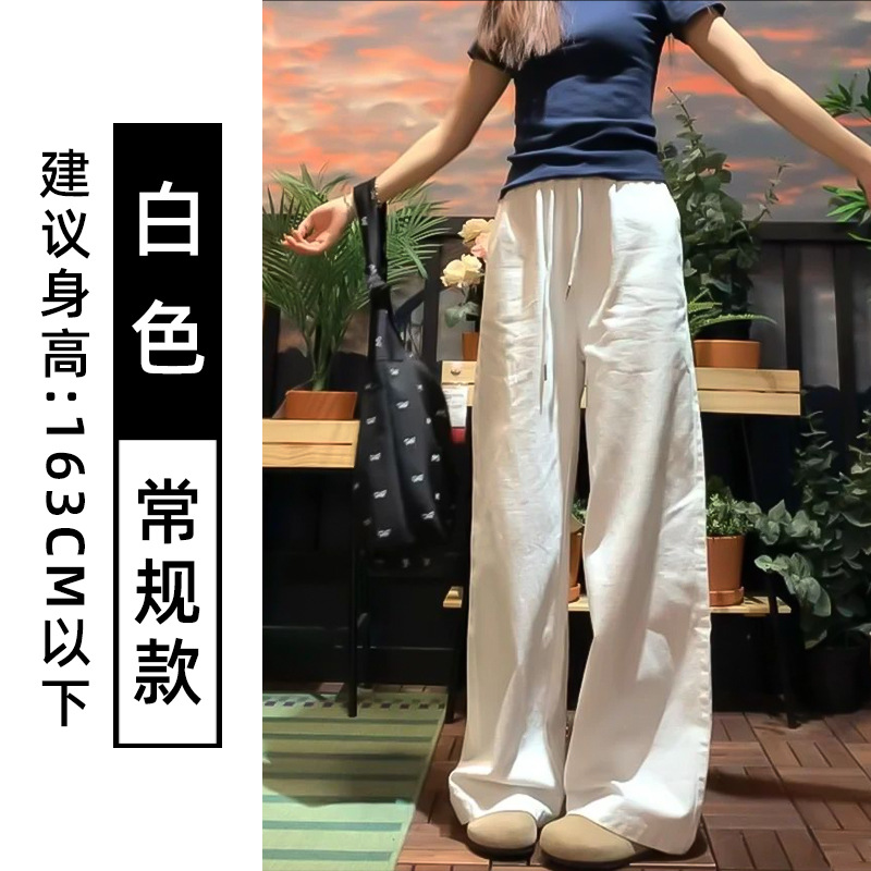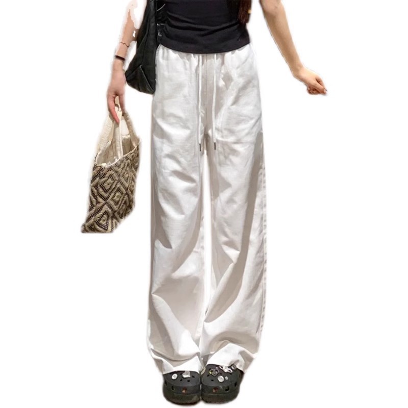 白色阔腿裤女春秋2025新款高腰垂感小个子抽绳宽松直筒棉麻牛仔裤