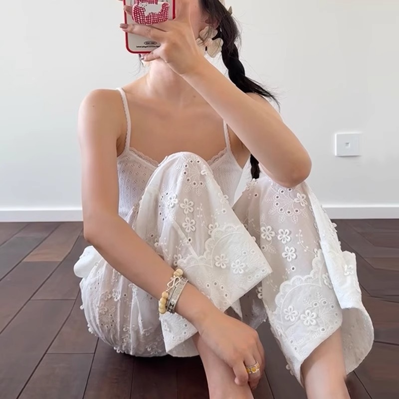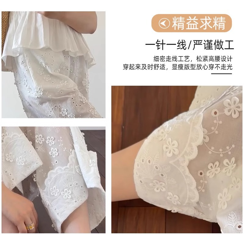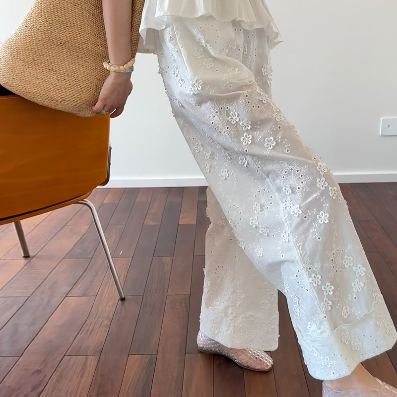 白色绣花镂空阔腿裤女夏季薄款2025新款高腰宽松显瘦休闲风直筒裤