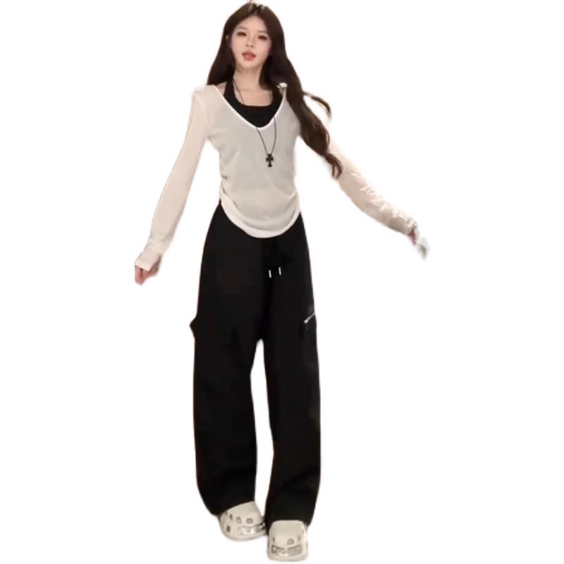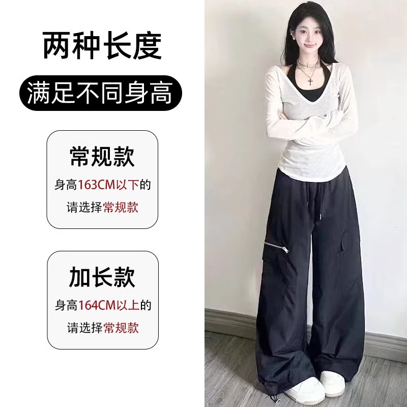 美式复古直筒工装裤女2025春夏新款高腰宽松小个子显瘦阔腿休闲裤